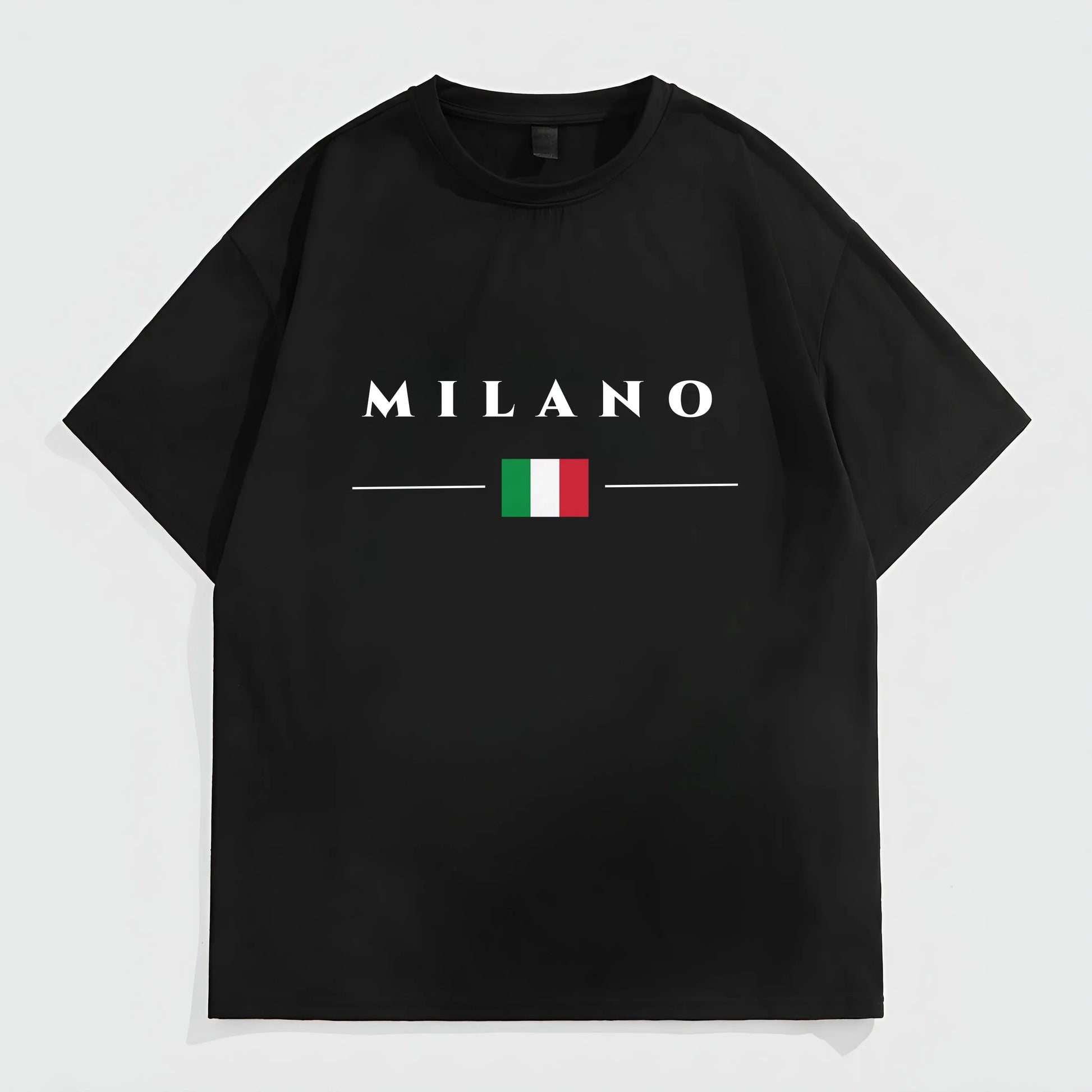 Fashion Tees for Summer Men's Casual T-Shirt Milano Text Print with Italian Flag Design for Daily Wear