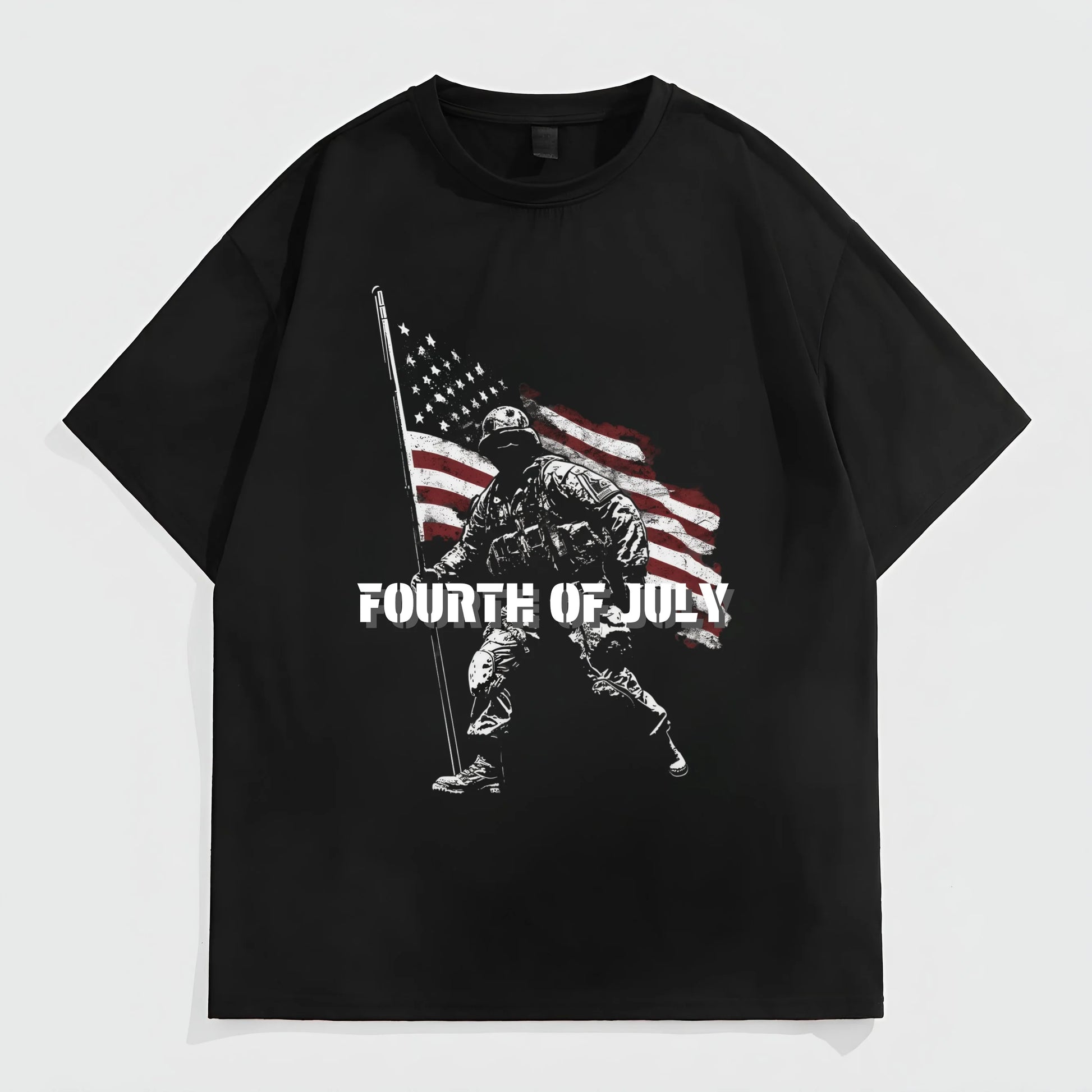 Graphic Tees Boutique Men's Casual T-Shirt American Flag Soldier Graphic Print Independence Day Patriotic Festival Wear