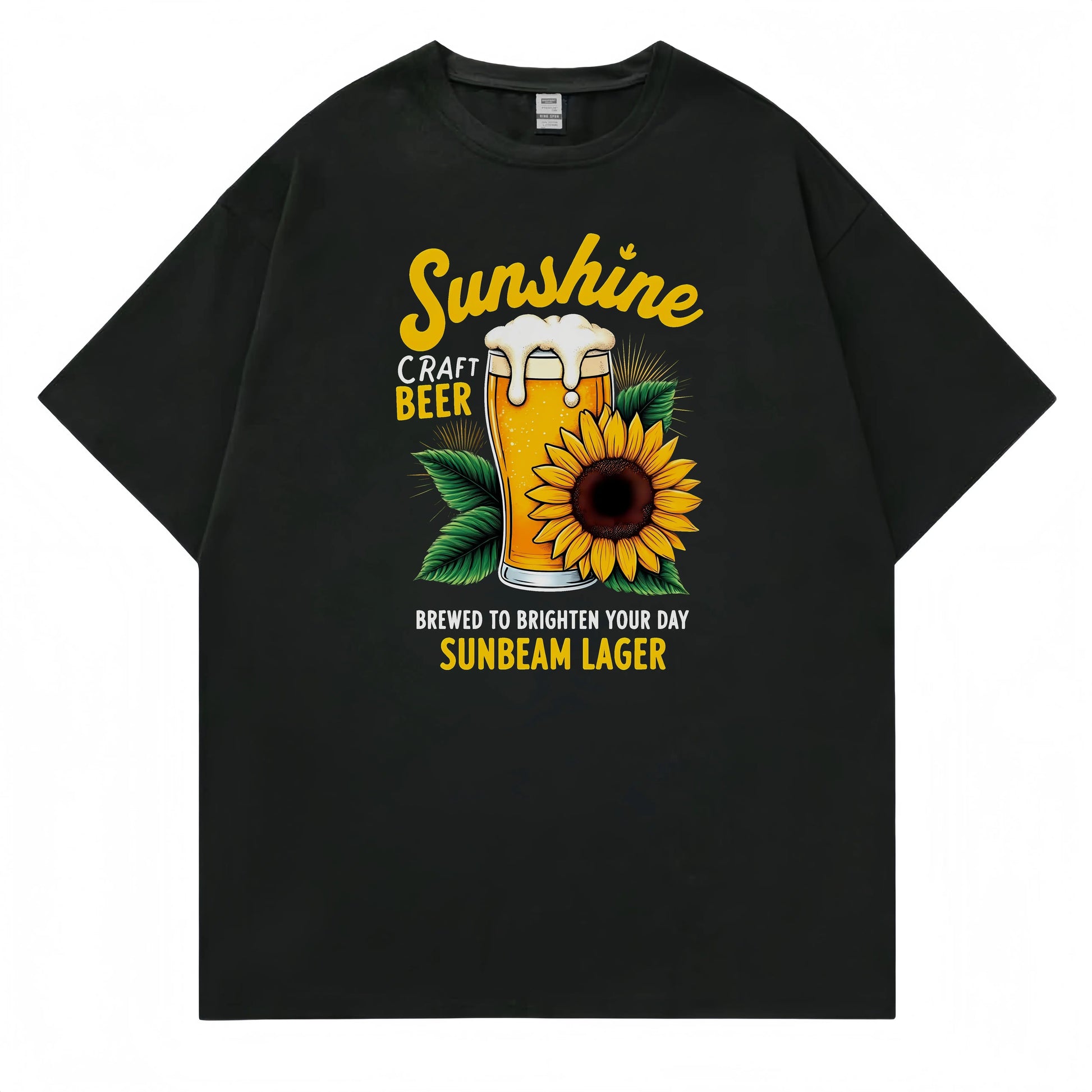 Men's Casual T Shirt Sunflower and Beer Graphic Print for Outdoor Activities Fashionable Graphic Tee for Men