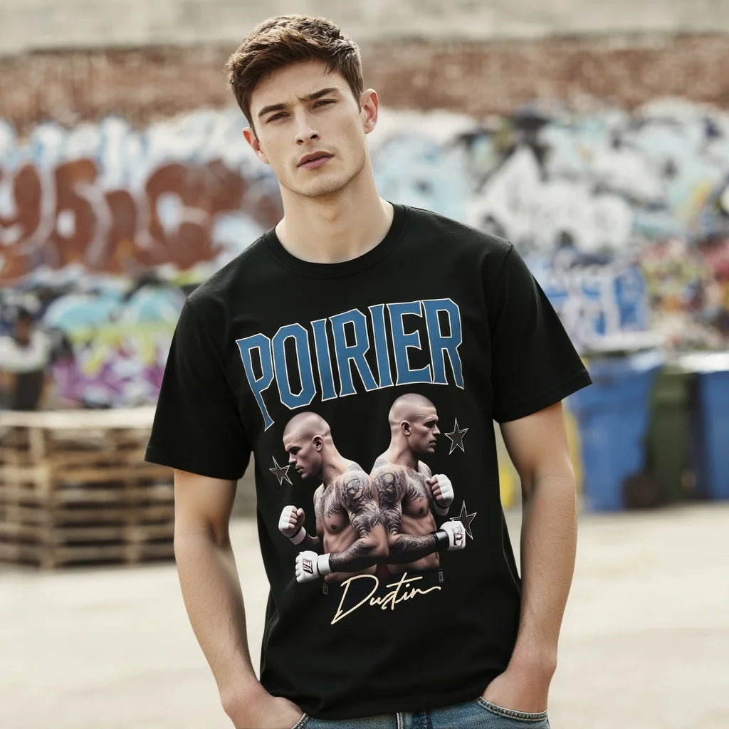 Men's Casual T Shirt with Fighter Graphic and Text for Sports Fans Fashionable Graphic Tee for Men