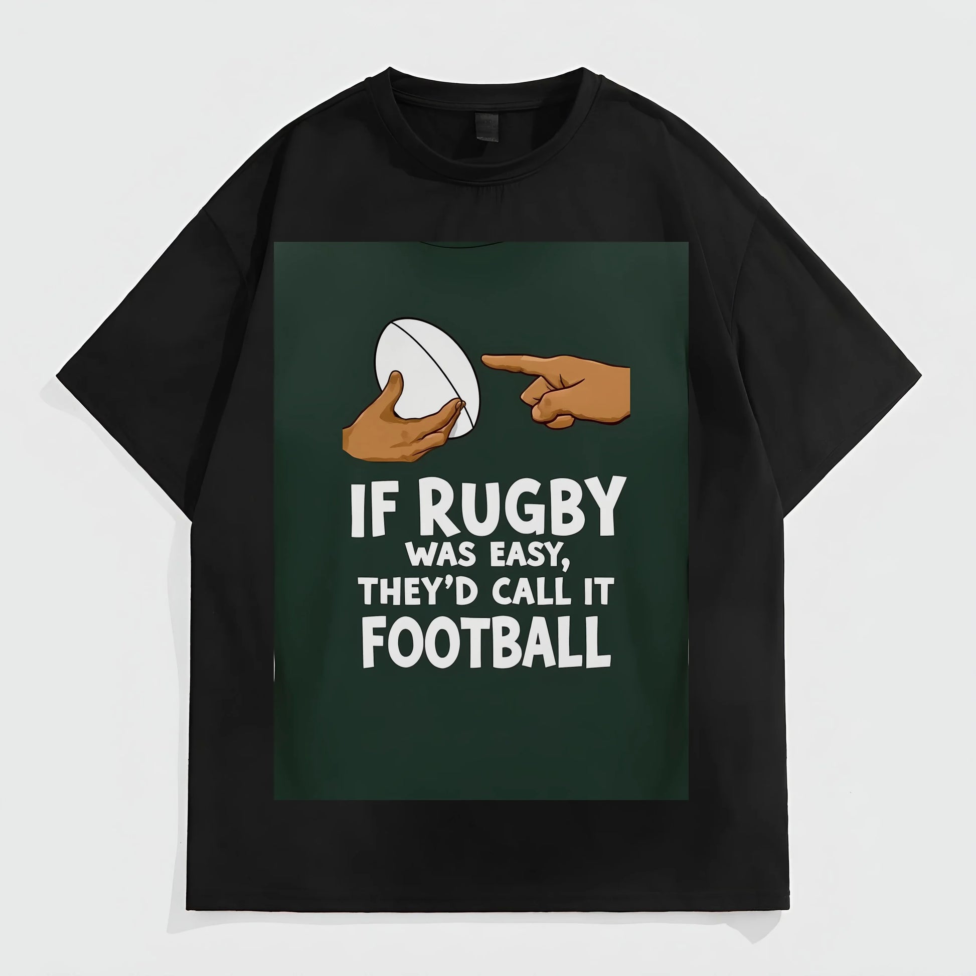 Men's Casual T-Shirt with Rugby Ball and Hand Graphic Print - If Rugby Was Easy, They'd Call It Football Text Design Fashion Tees 2025