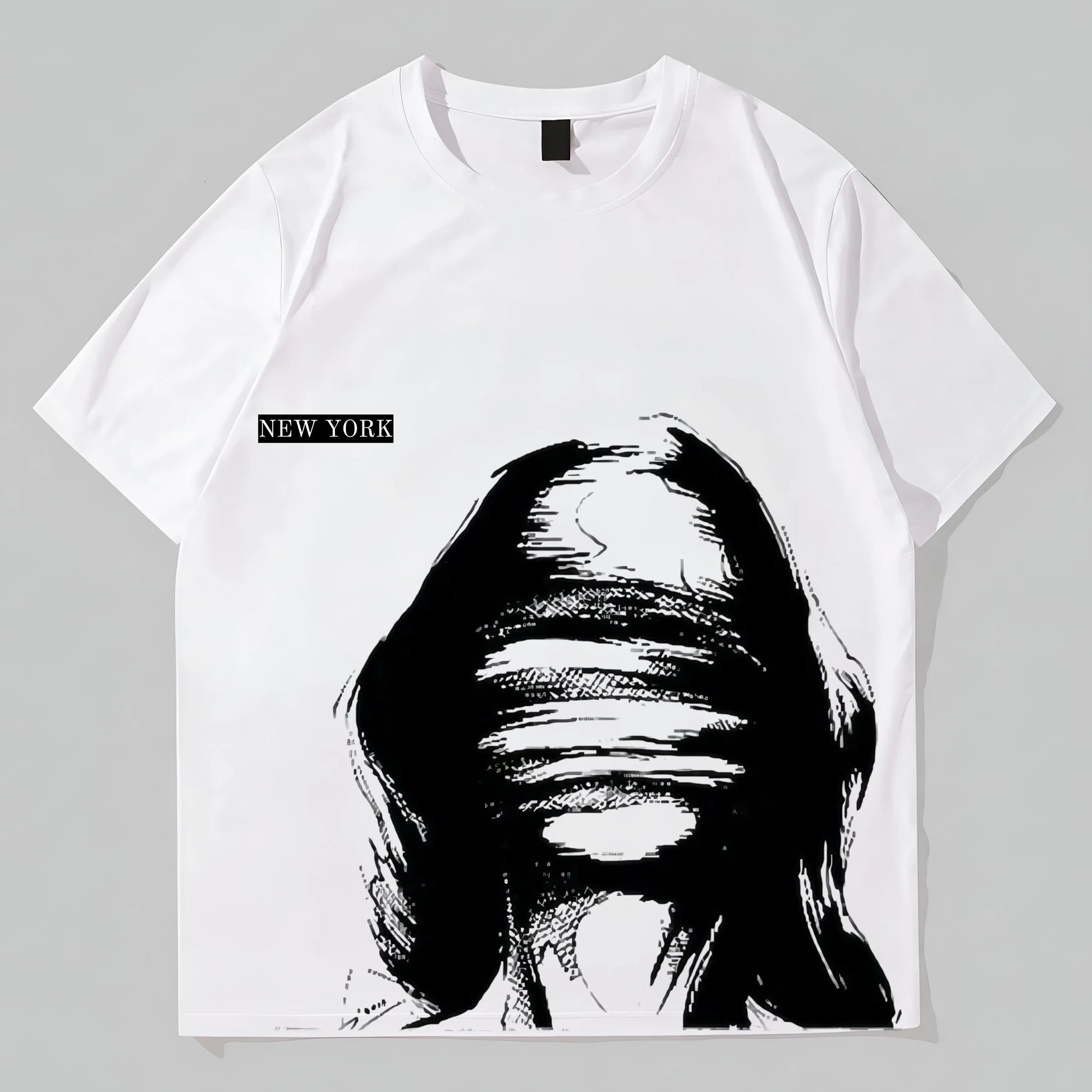 Men's Short Sleeve T-Shirt Abstract Face Art Print New York Casual Daily Wear Graphic Fashion Tees For Man