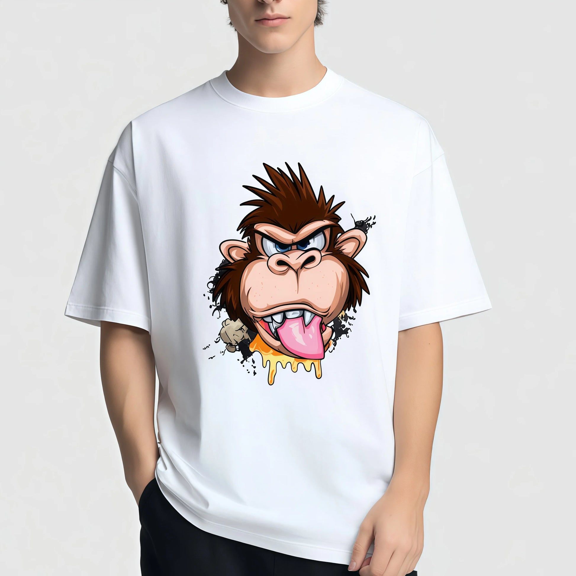 Pod Graphic Tees White T-Shirt with Cartoon Monkey Face Print for Casual Wear