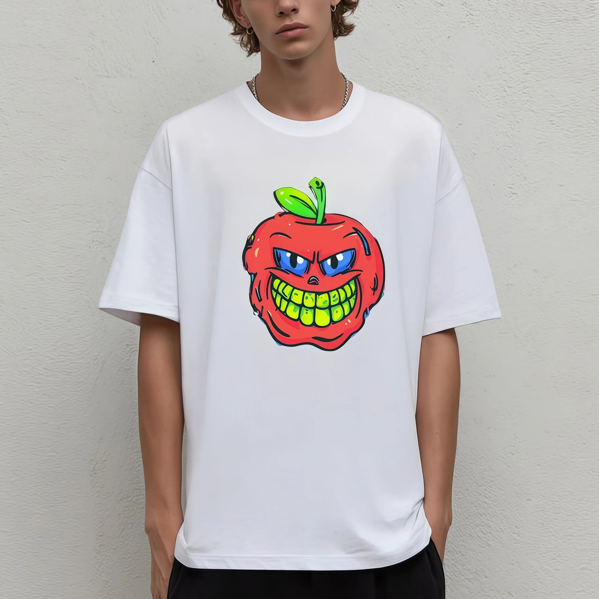 Trendy Tee Trends Men's Casual T-Shirt with Colorful Apple Face Print for Daily Wear