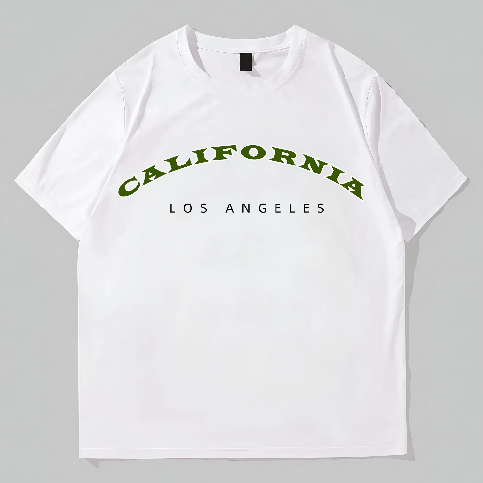 Trendy Tees for Men White Short Sleeve T-Shirt California Los Angeles Print Casual Daily Wear
