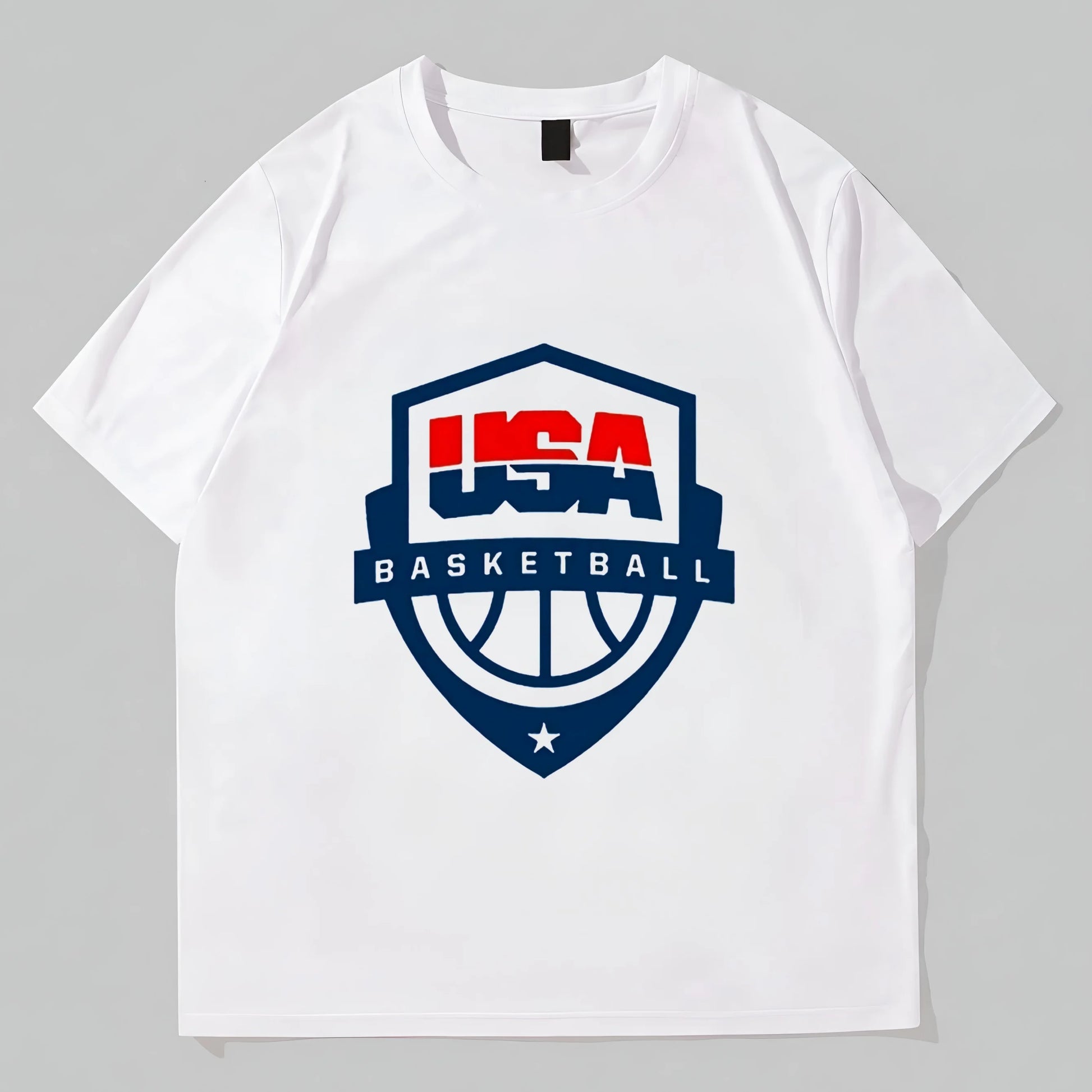 White T-Shirt with Country Sports Team Logo Print for Casual Wear Graphic Fashion Tees For Man