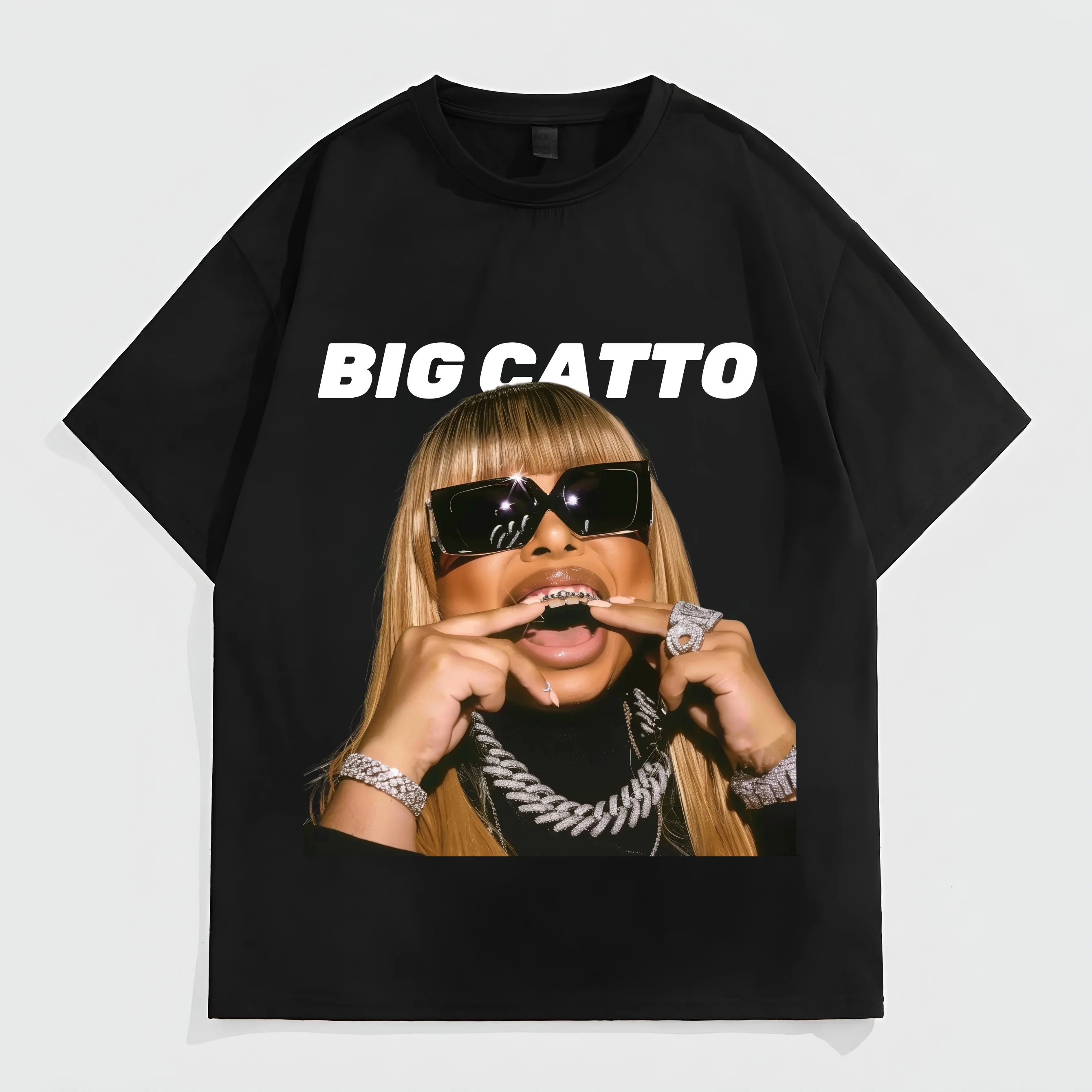 Black Oversized T-Shirt with Bold Text and Portrait Print for Casual Wear Graphic Tees Outfit