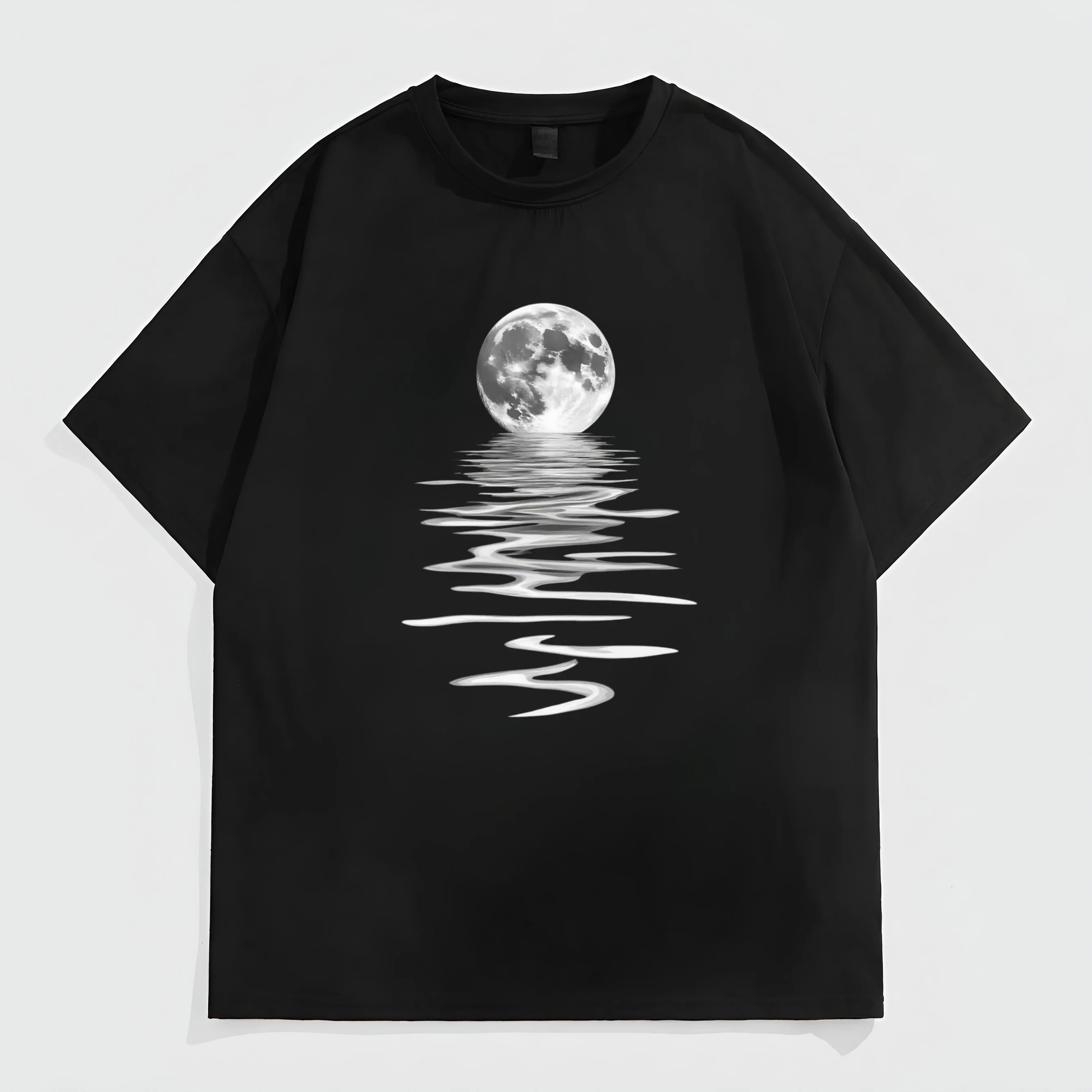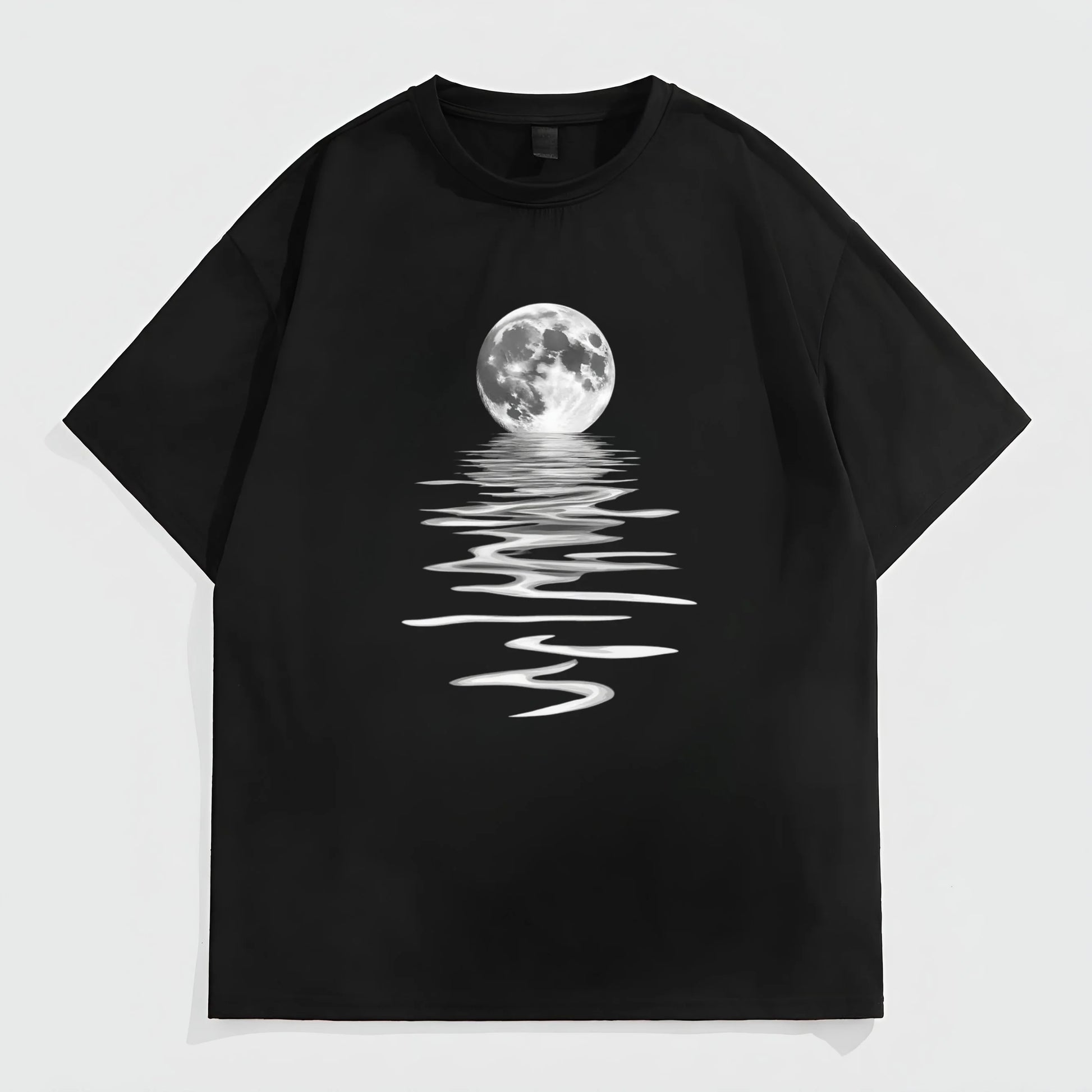 Black Oversized T-Shirt with Moon Reflection Print for Casual Wear Fashion Tees For Summer