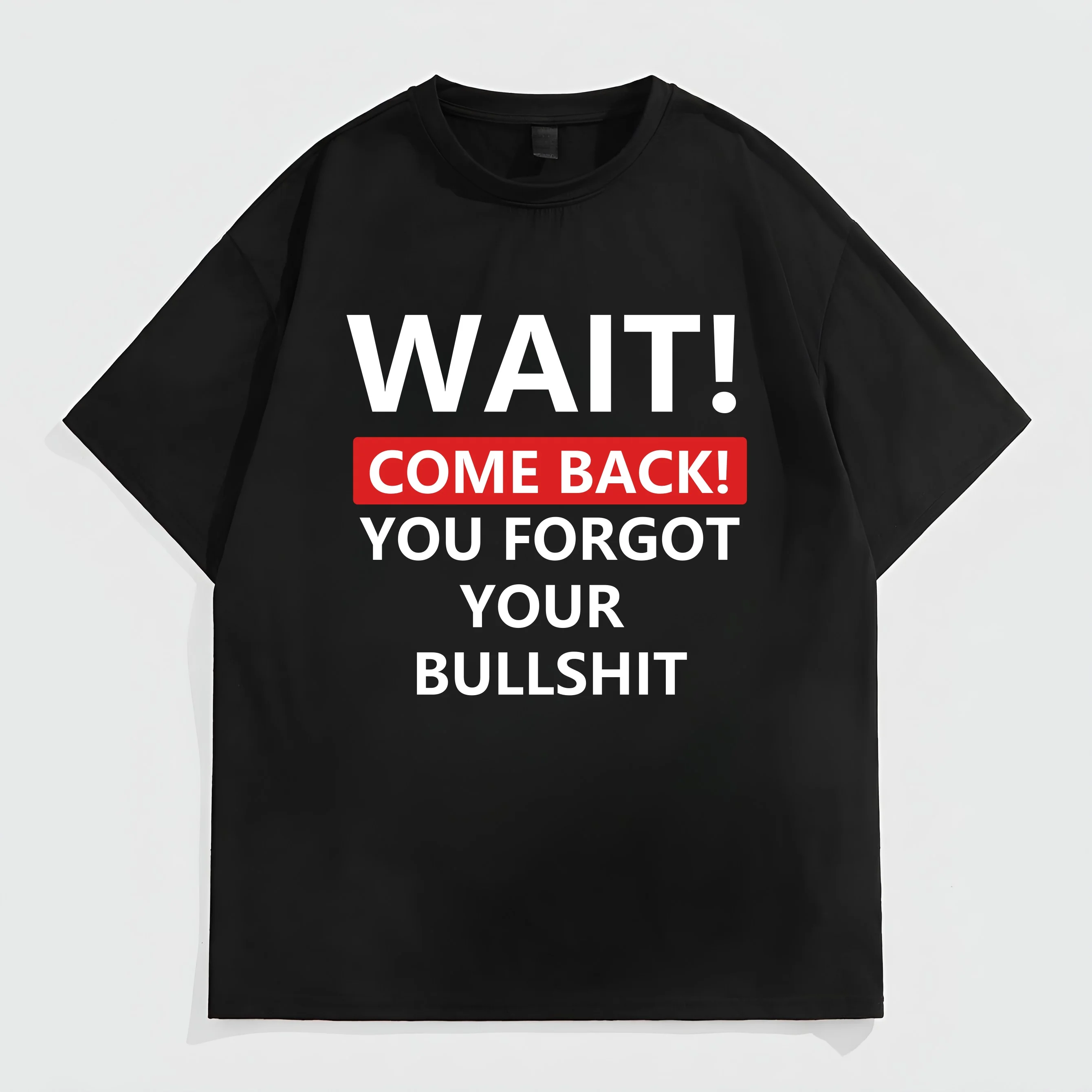 Black Short Sleeve T-Shirt with Bold Text Print WAIT! COME BACK! YOU FORGOT YOUR BULLSHIT for Casual Wear Graphic Tees Outfit