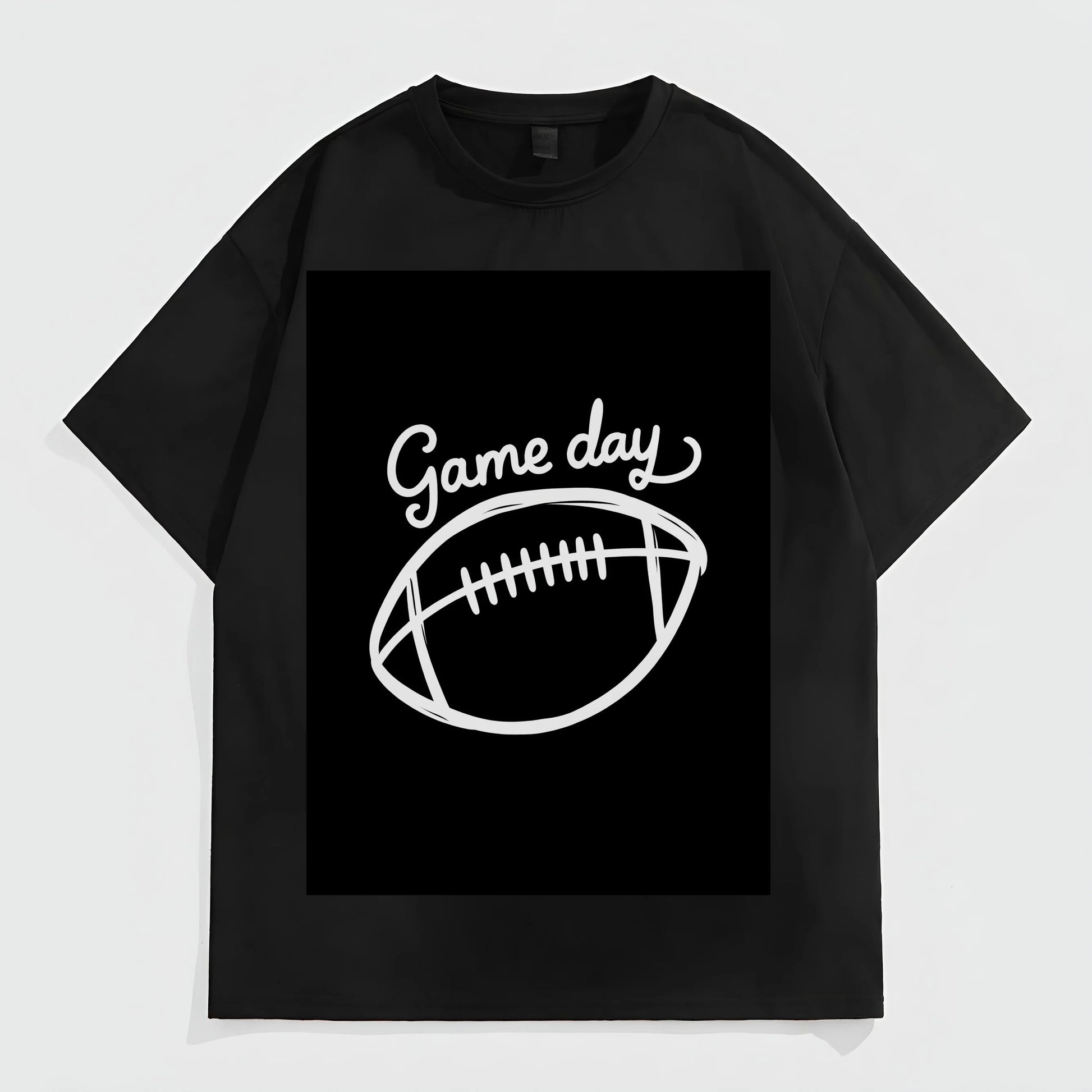 Black Short Sleeve T-Shirt with Football Graphic and Game Day Text for Sports Events Fashion Tees 2025