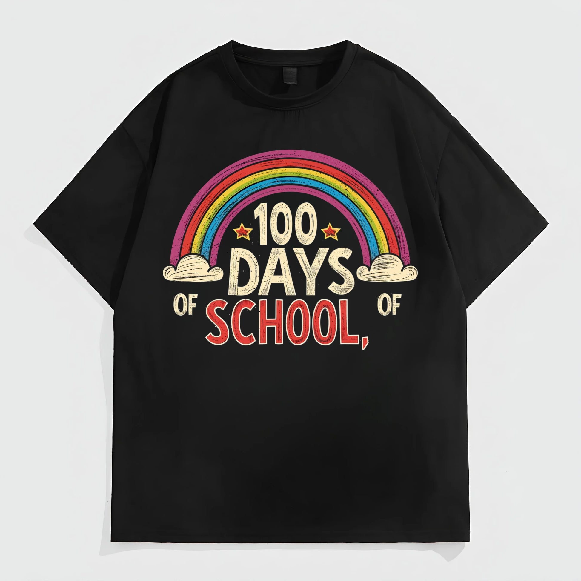 Black Short Sleeve T-Shirt with Rainbow and 100 Days of School Print for School Events Trendy Tees For Men