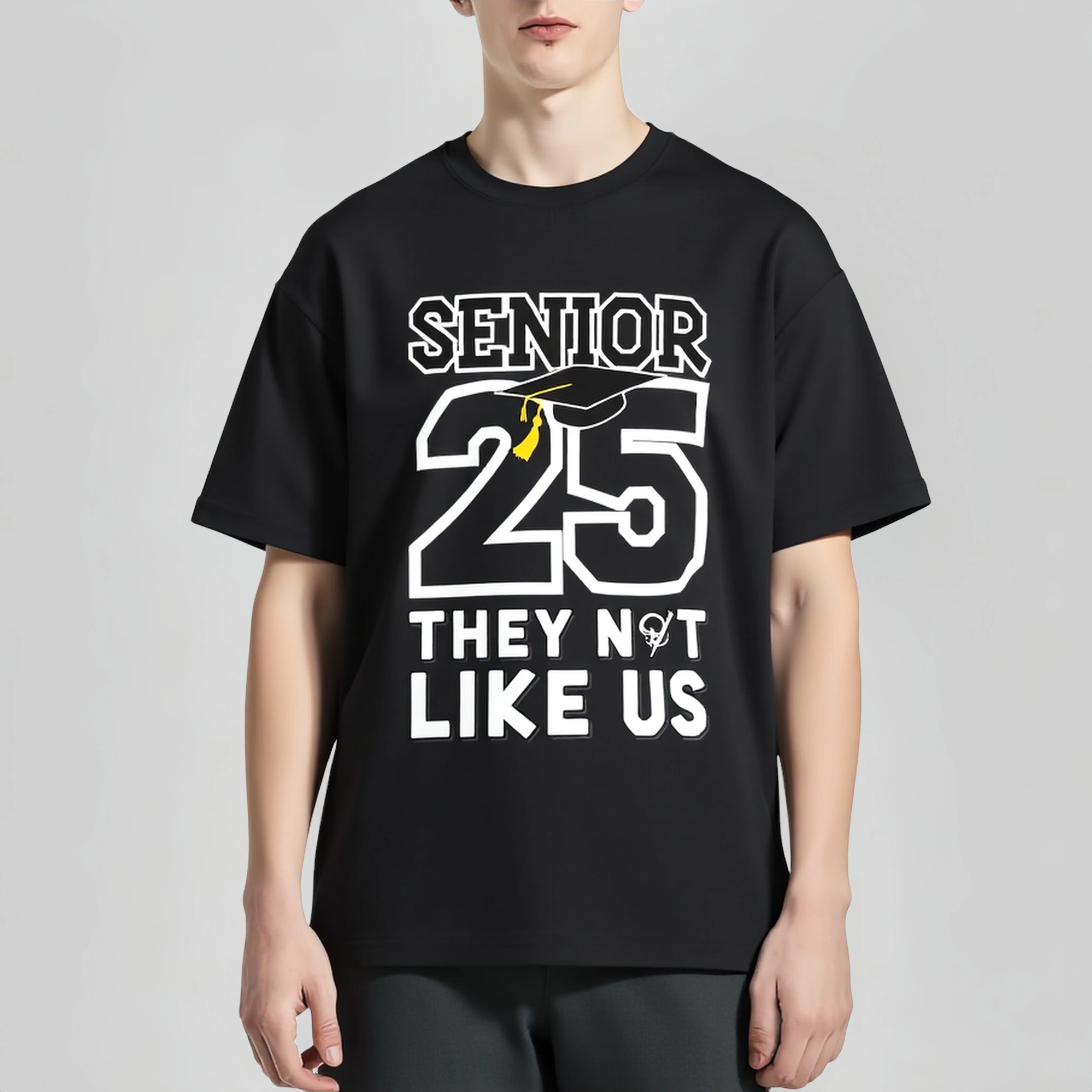 Black Short Sleeve T-Shirt with Senior 25 They Not Like Us Print for Graduation Party Graphic Tees Boutique