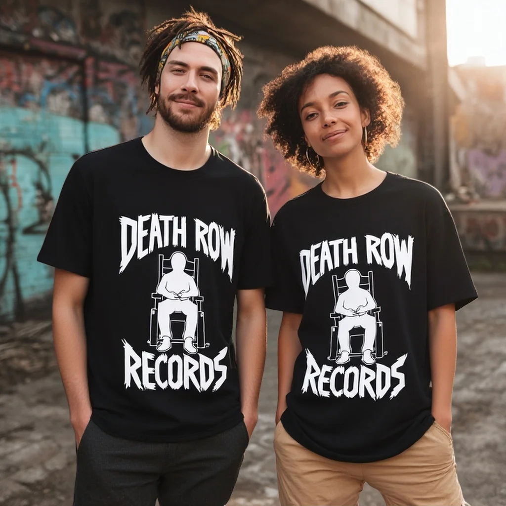 Black T Shirt with Chair Graphic and Text DEATH ROW - Casual Streetwear for Music Lovers Graphic Tee For Summer 2025