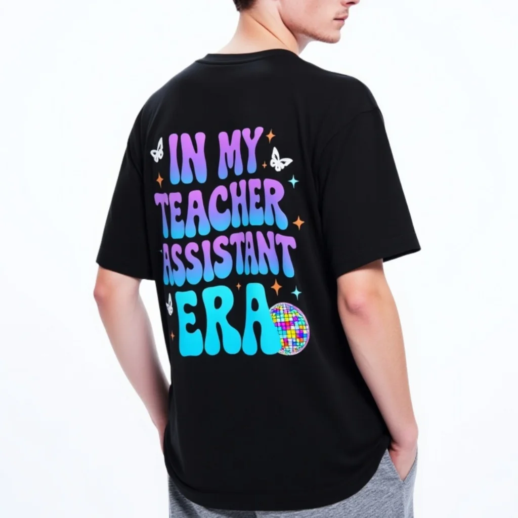 Black T Shirt with Colorful Text and Butterfly Print for School Staff Use Graphic Tee For Summer 2025