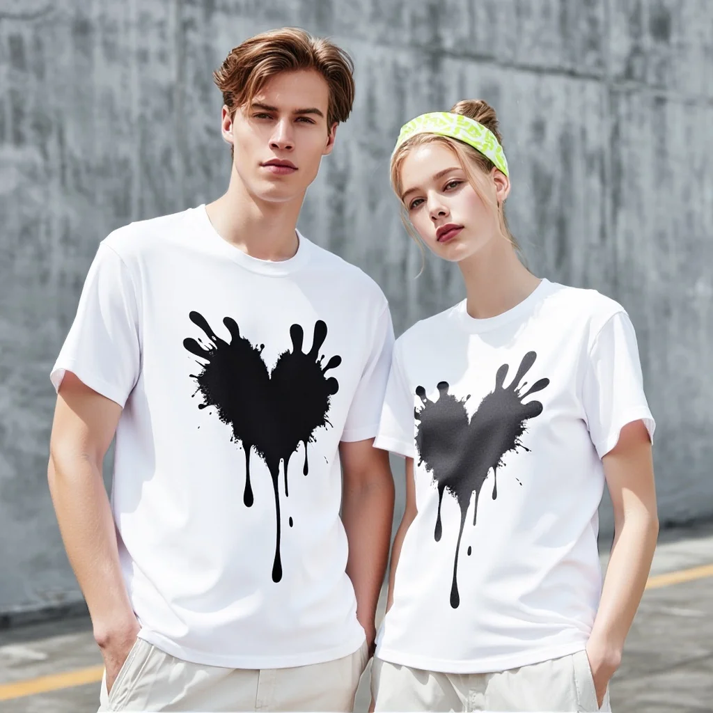 Couples T Shirts Black Heart Drip Print Casual Wear for Daily Outdoor Activities Graphic Tee For Summer 2025