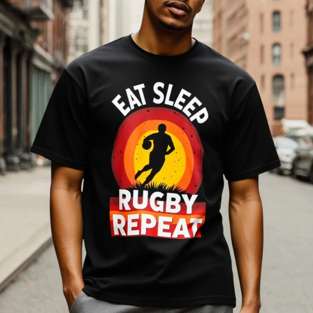 Fashion Graphic Tee Men's Casual T Shirt Eat Sleep Rugby Repeat Graphic Tee Sports Fan Wear For Daily Use