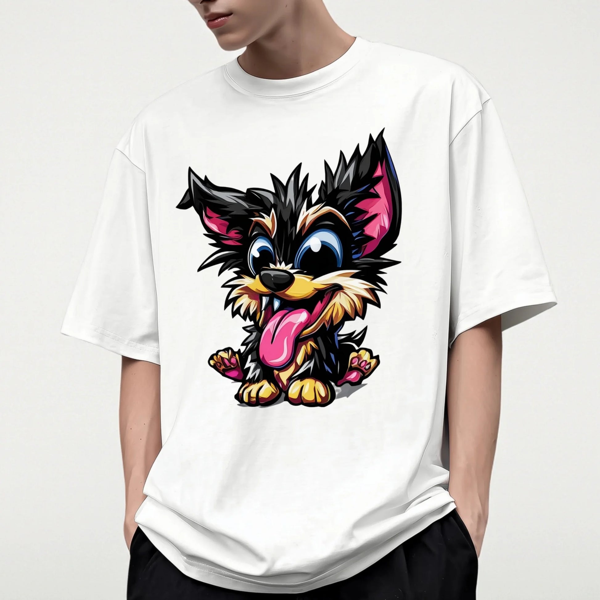 Fashion Tees 2025 Cute Cartoon Dog Print White T-Shirt for Men Women Casual Daily Wear Graphic Tee Summer Streetwear Fashion Top
