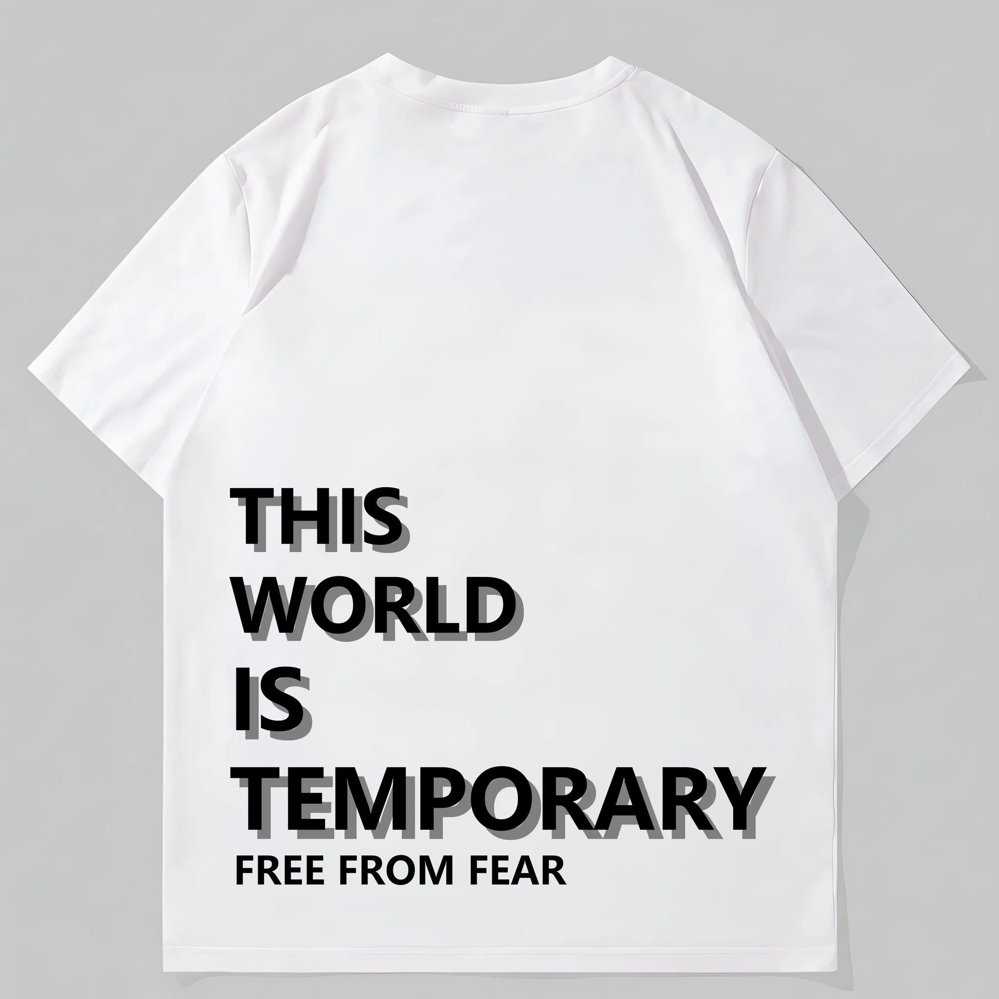 Fashion Tees for Summer Simple T-Shirt with This World Is Temporary Free From Fear Inspirational Quote for Casual Wear