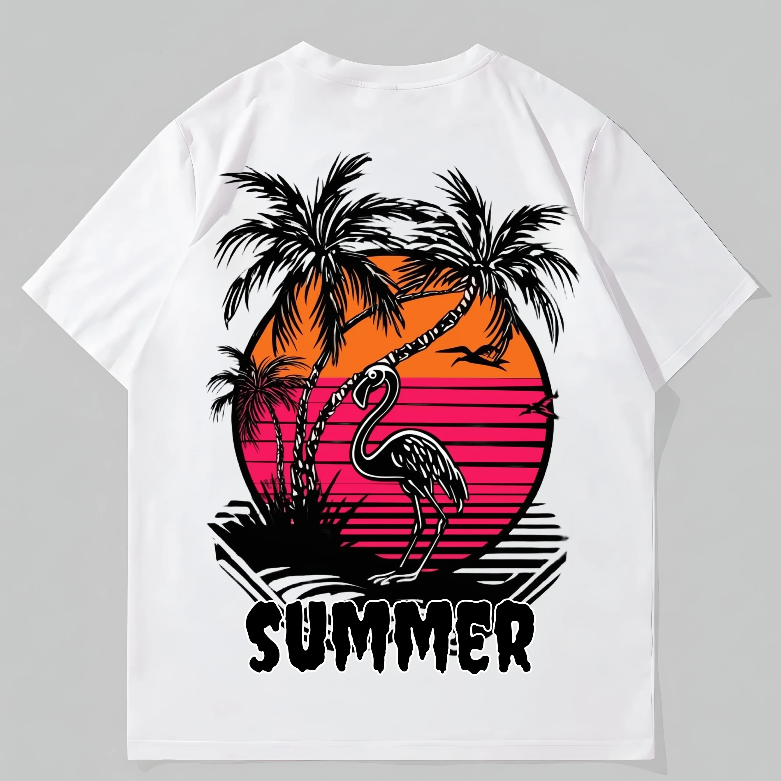 Fashion Tees For Summer Summer T-Shirt with Palm Trees Flamingo Sunset Print for Beach Vacation