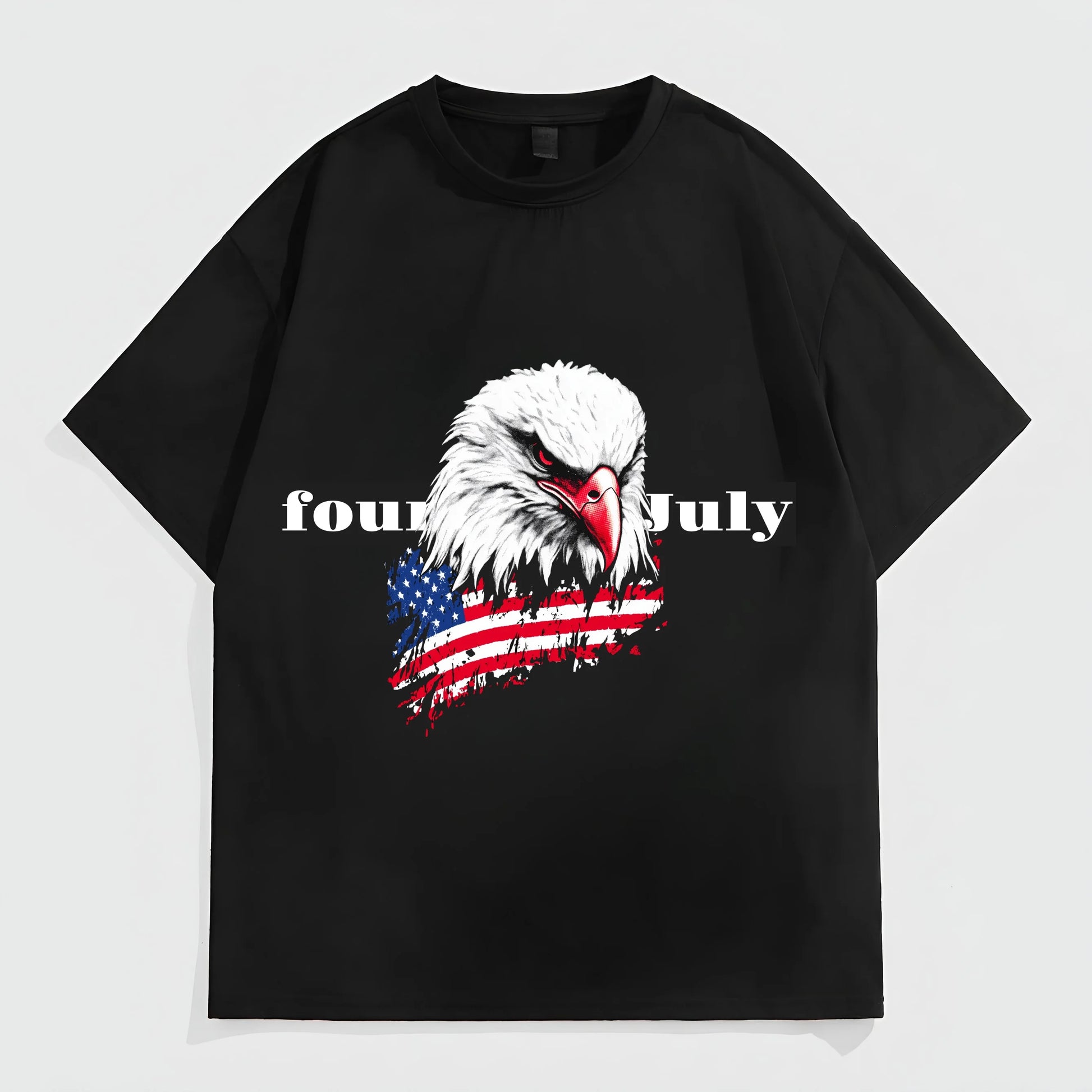 Graphic Tees Boutique Black Short Sleeve T-Shirt with Eagle and Flag Print for Independence Day Celebrations