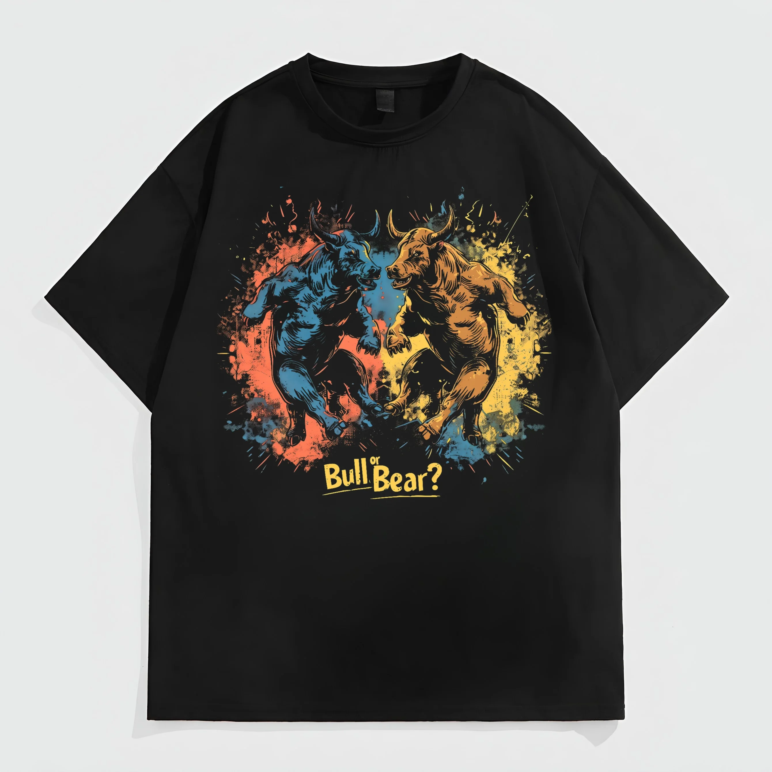 Men's Casual T-Shirt Abstract Bull Bear Splash Art Print for Daily Wear Fashion Tees For Summer