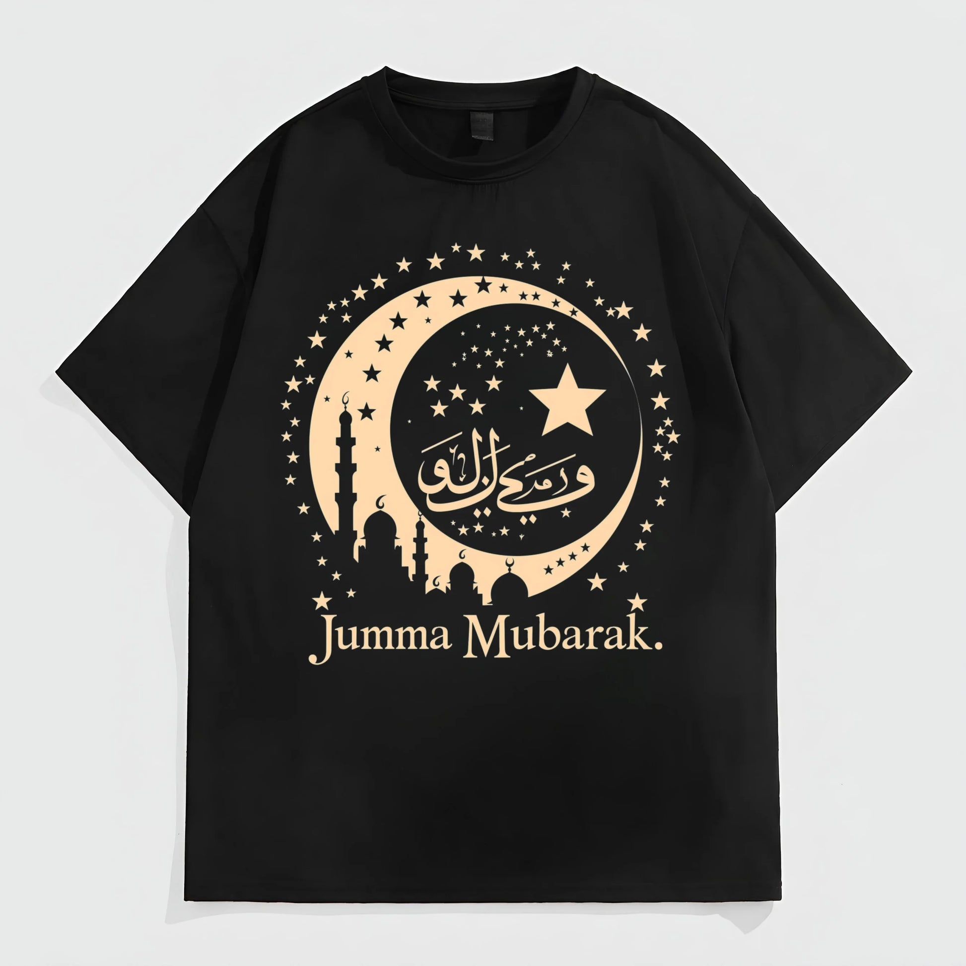 Men's Casual T-Shirt Crescent Moon Stars Arabic Text Print Eid Festival Wear Fashion Tees For Summer