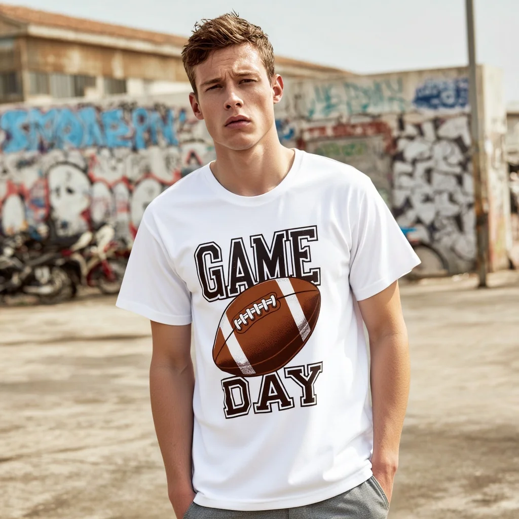 Men's Casual T Shirt Football Graphic Print GAME DAY Text Design for Sports Events and Daily Wear Fashionable Graphic Tee for Men