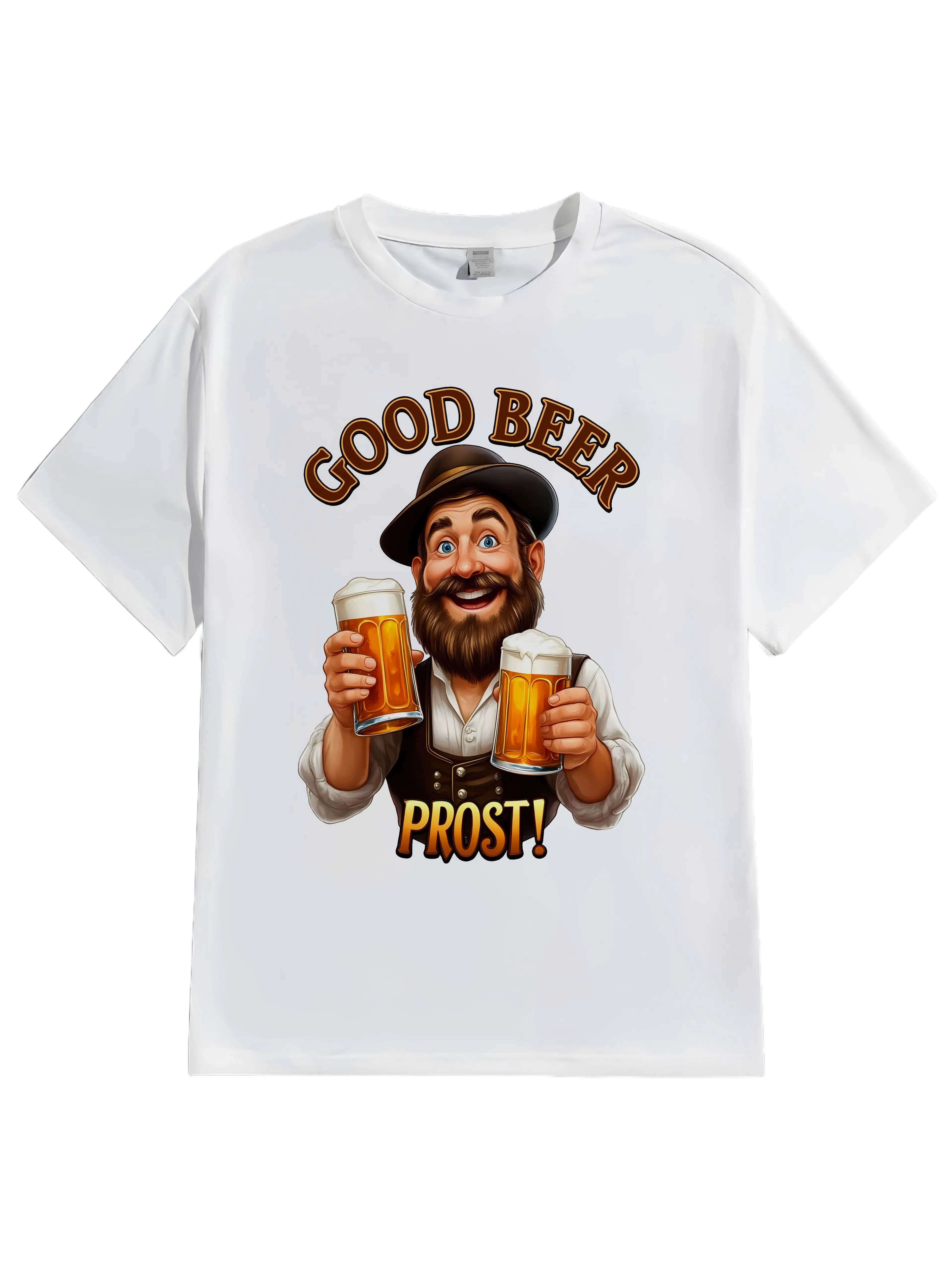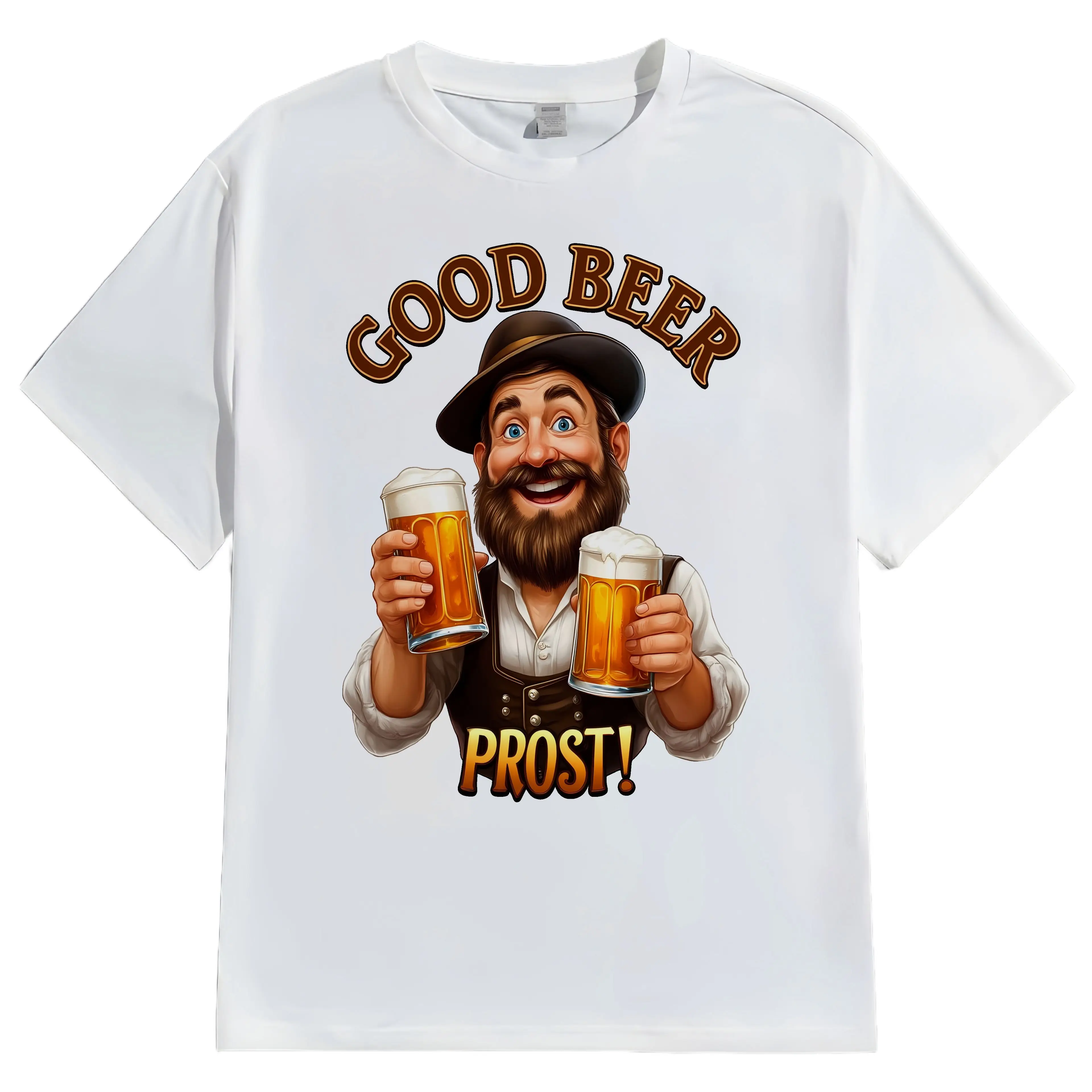 Men's Casual T Shirt Good Beer Prost Cartoon Print Outdoor Leisure Wear Fashionable Graphic Tee for Men