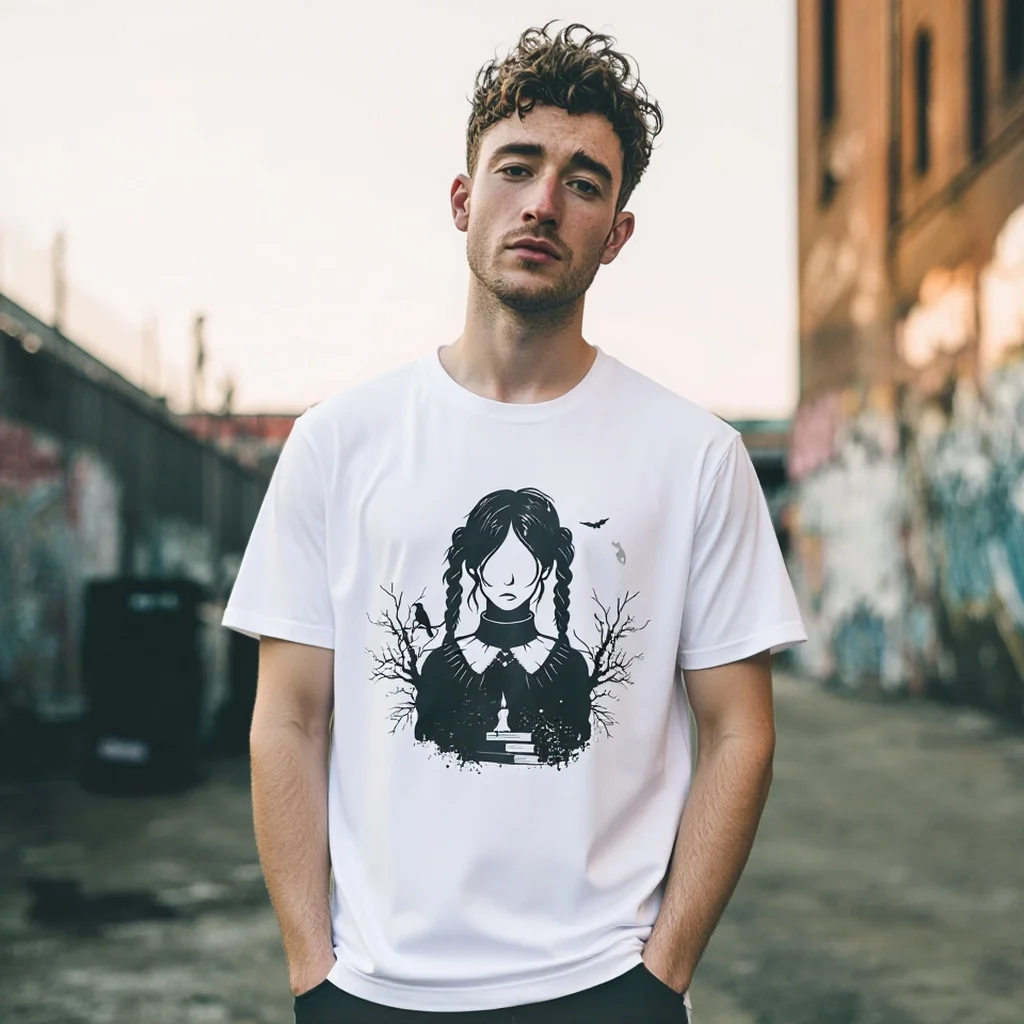 Men's Casual T Shirt | Gothic Girl Illustration Print Urban Streetwear | Trendy Graphic Tee 2025