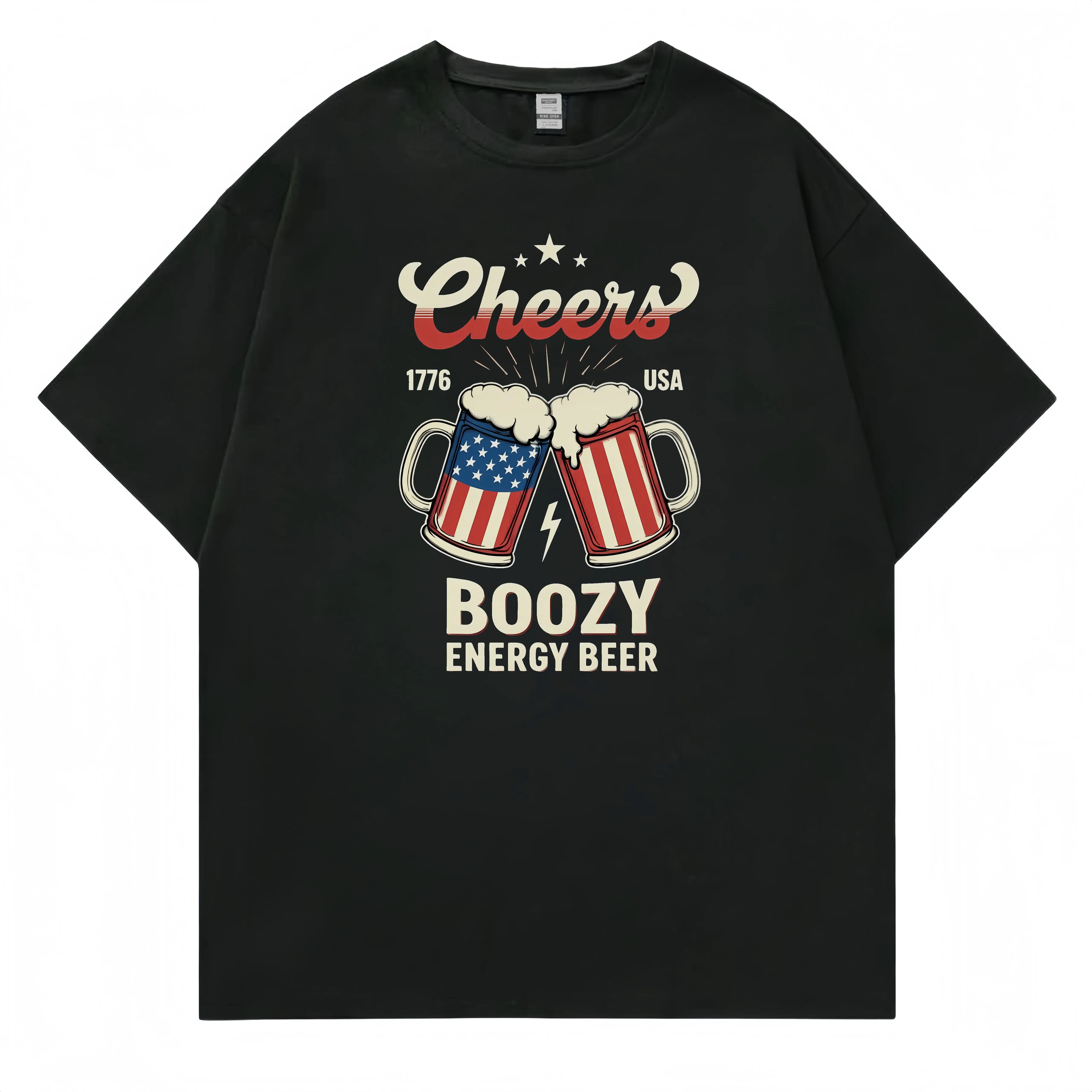 Men's Casual T Shirt Patriotic Flag and Lightning Bolt Design for Outdoor Activities Fashionable Graphic Tee for Men