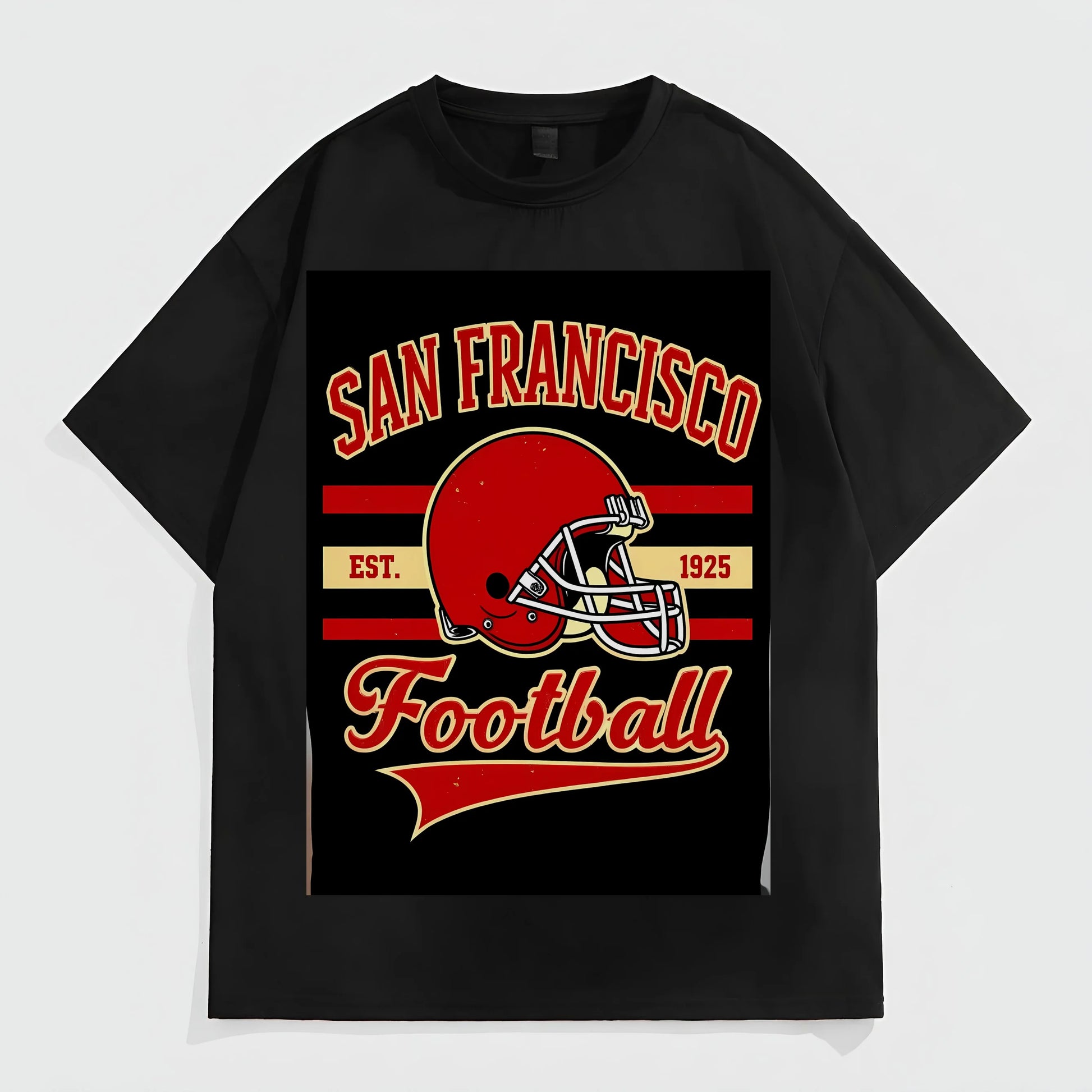 Men's Casual T-Shirt with City Football Helmet Graphic for Sports Fans Fashion Tees 2025