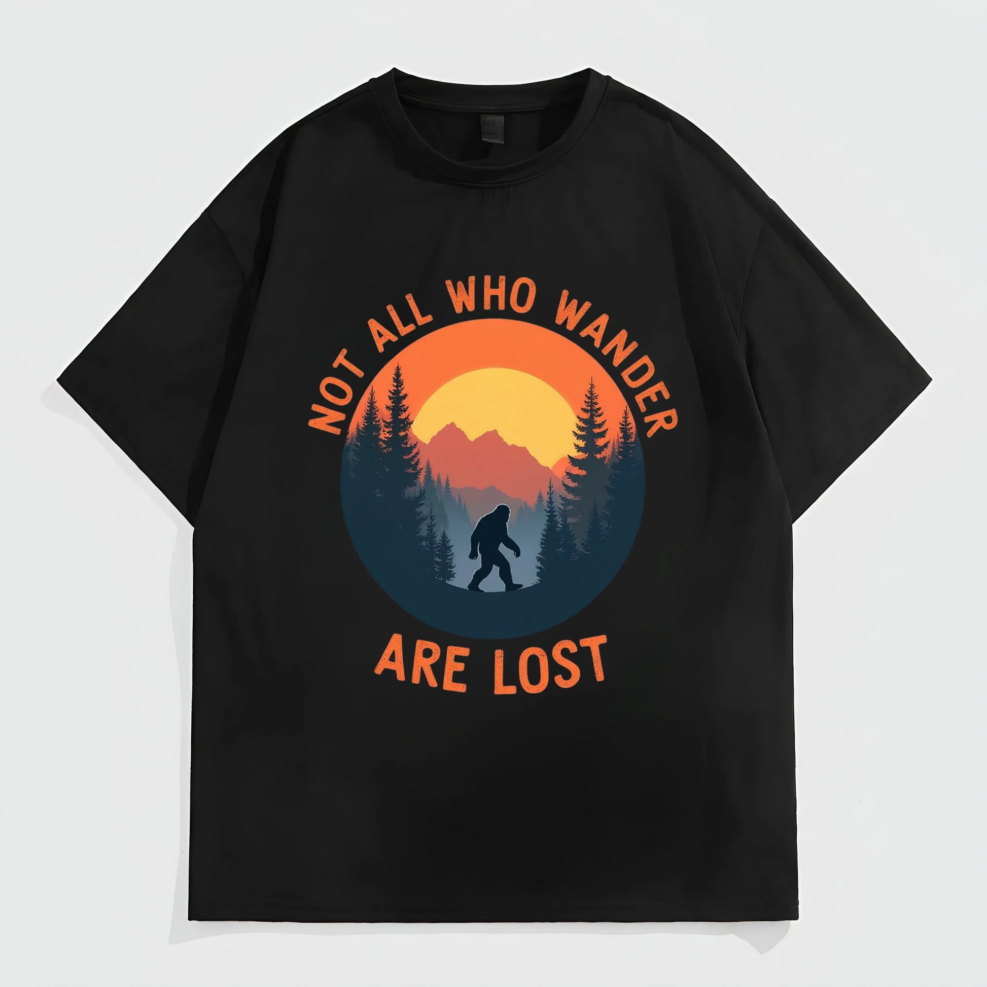 Men's Casual T-Shirt with Forest Sunset and Wanderlust Quote Print for Outdoor Activities Fashion Tees For Summer