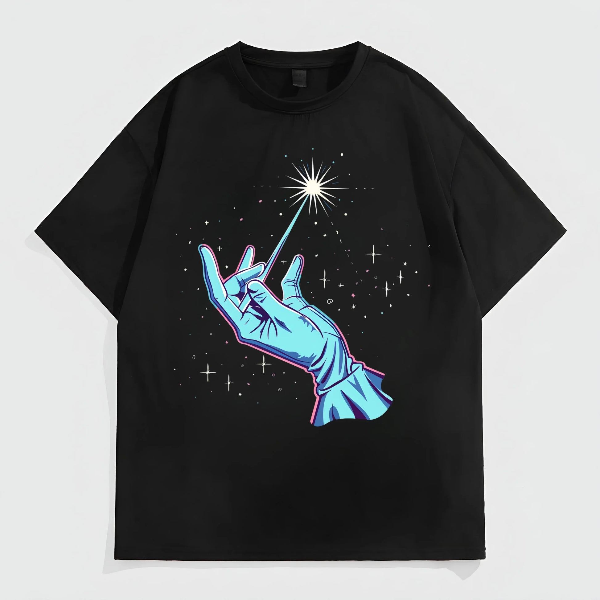 Men's Casual T-Shirt with Futuristic Hand Holding Star Print for Daily Wear Fashion Tees For Summer
