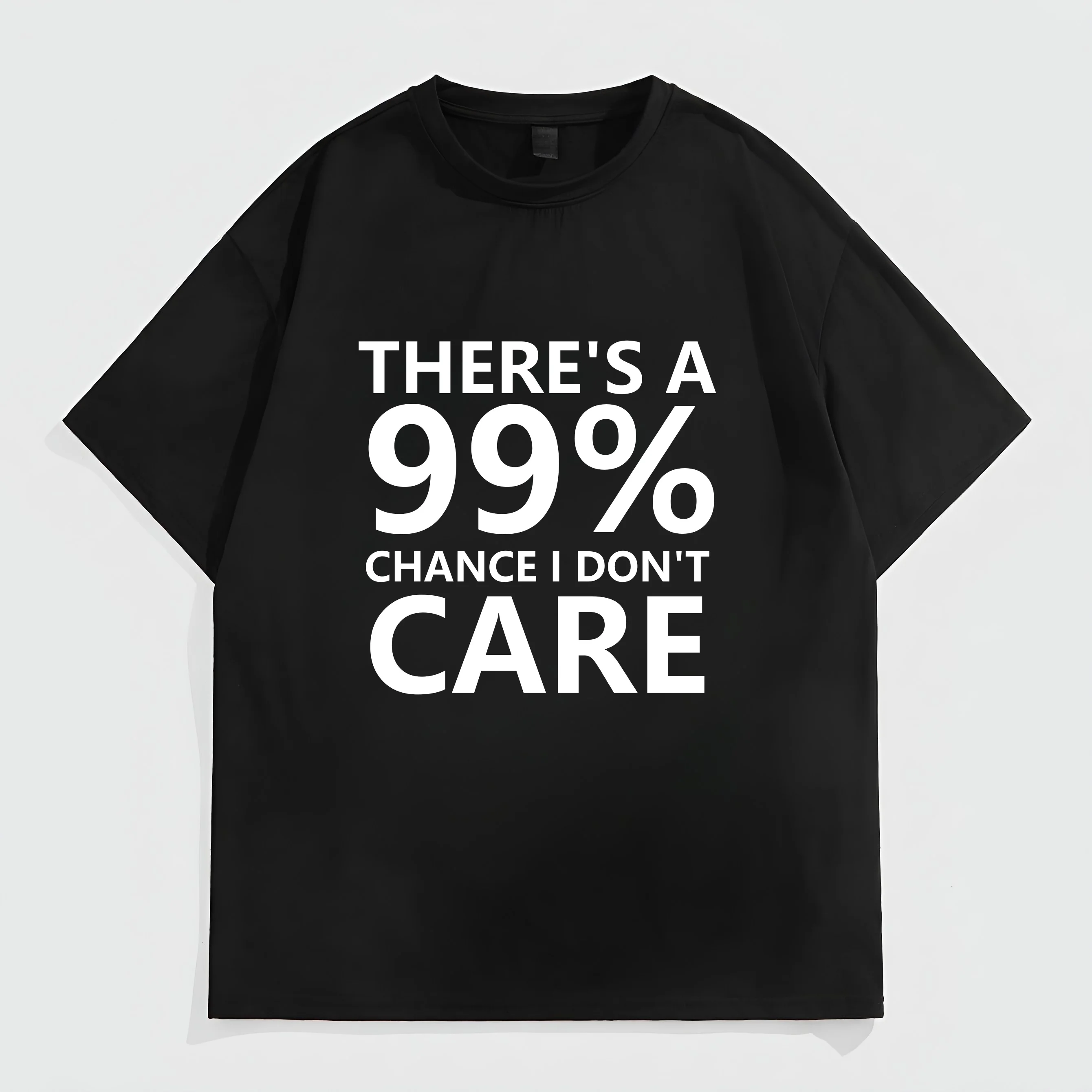 Men's Casual T-Shirt with There's a 99% Chance I Don't Care Text Print for Daily Wear Graphic Tees Outfit