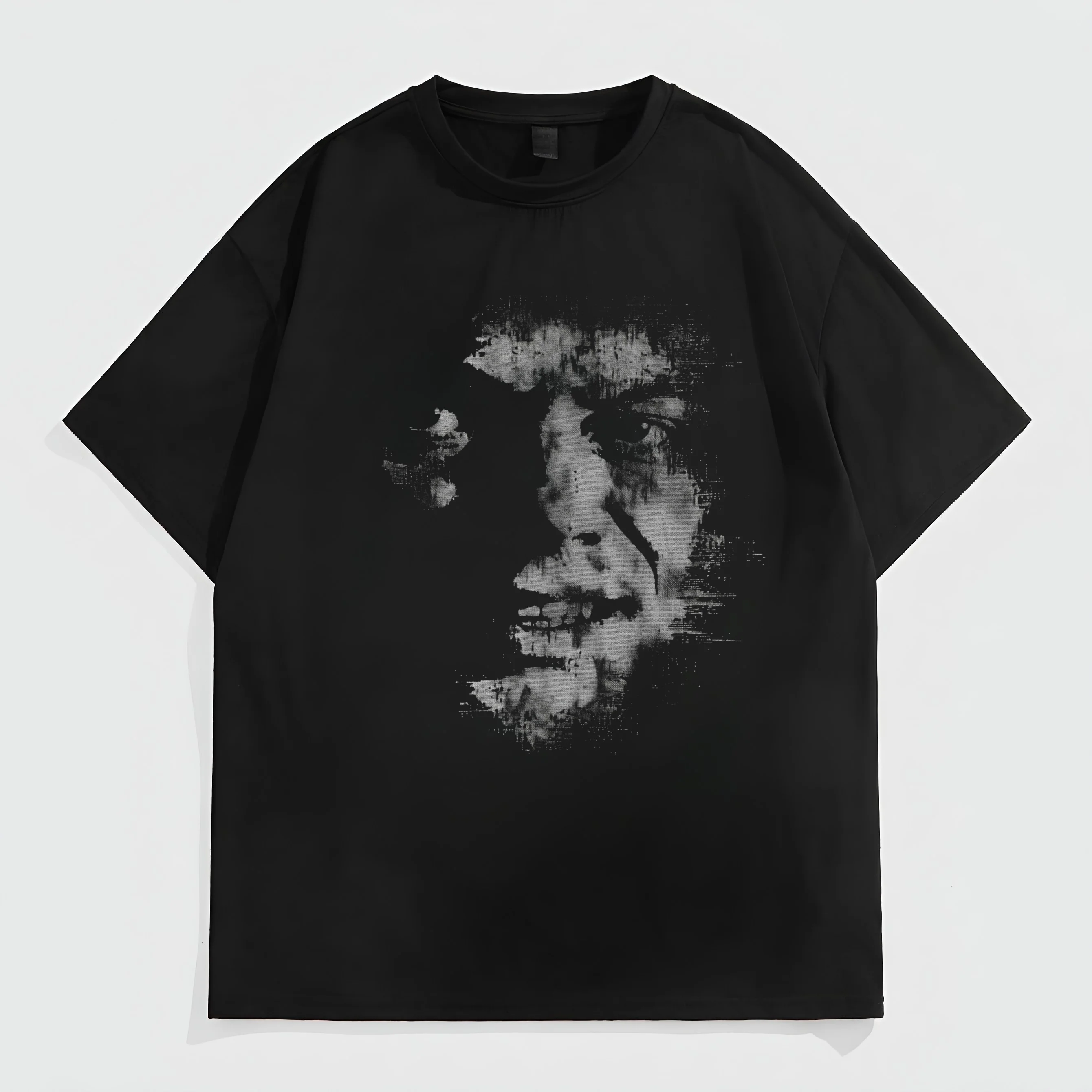 Men's Oversized T-Shirt Abstract Face Print Casual Daily Wear Graphic Tees Outfit