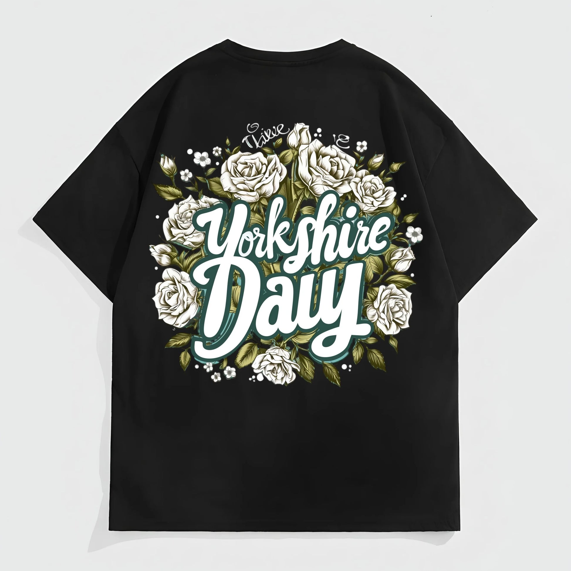 Men's Oversized T-Shirt with Floral Pattern and Yorkshire Dale Text for Casual Wear Graphic Fashion Tees For Man