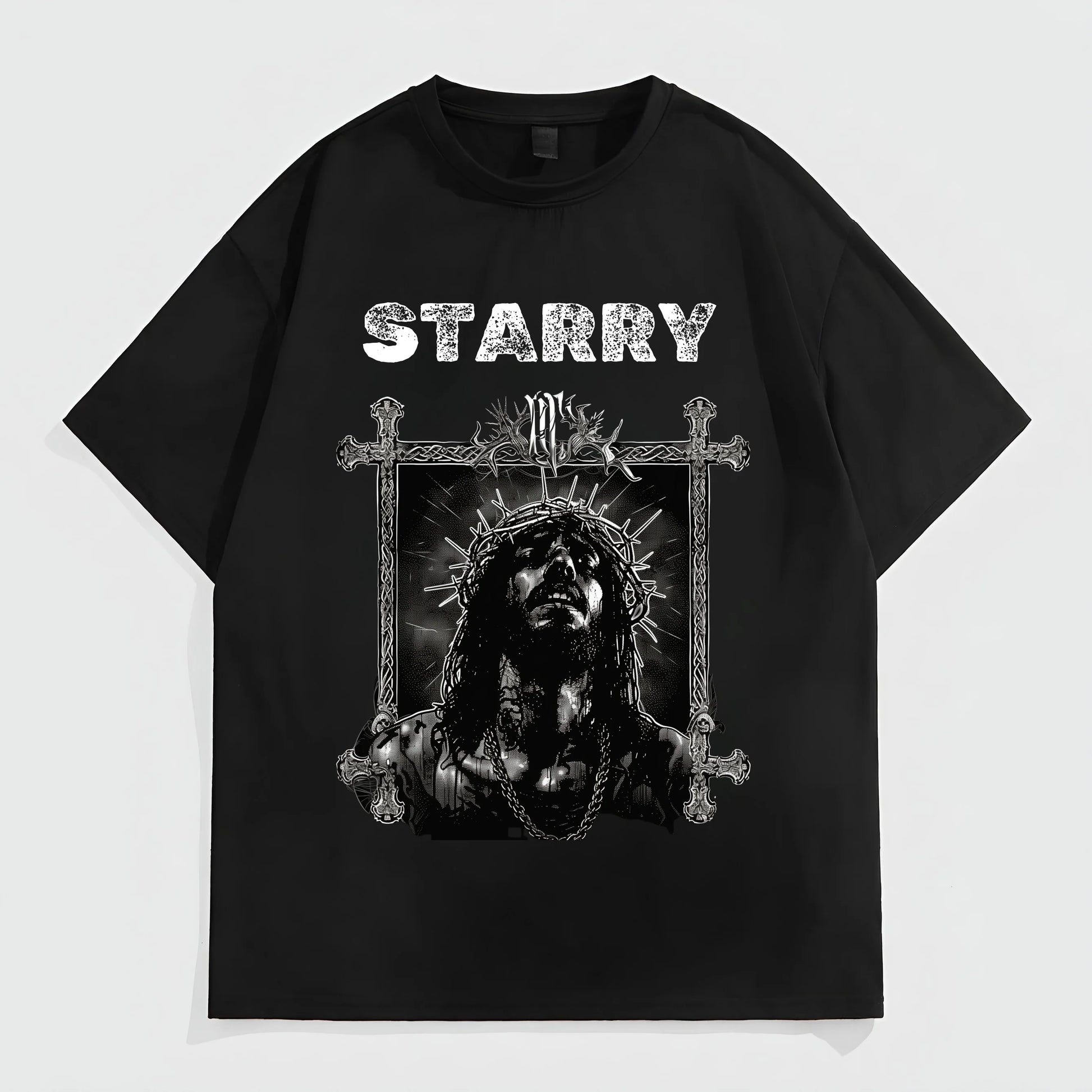Men's Oversized T-Shirt with Gothic Cross and Crown of Thorns Print for Casual Wear Graphic Tees Outfit