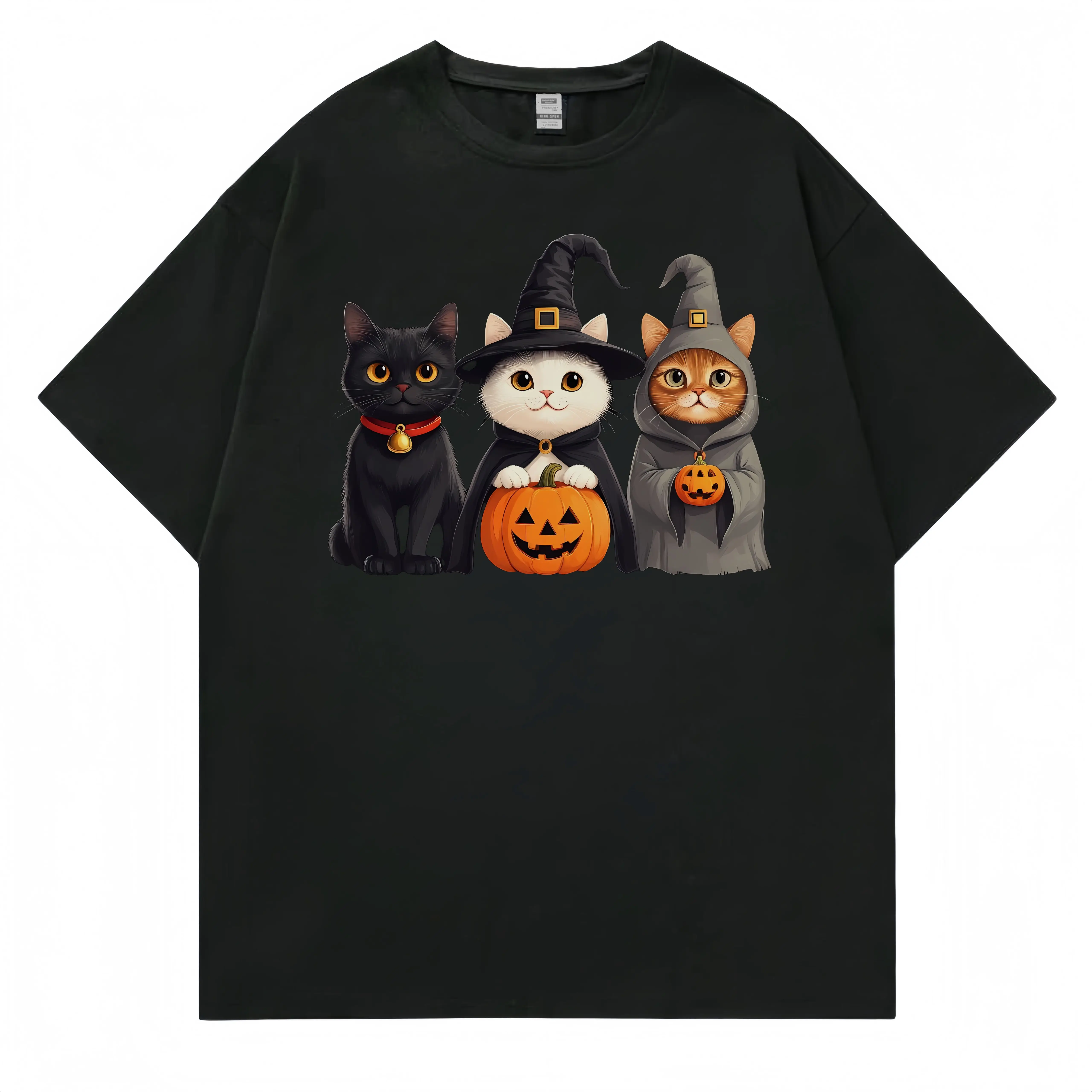 Men's Round Neck T Shirt Halloween Cats Pumpkin Print Casual Daily Wear Fashionable Graphic Tee for Men
