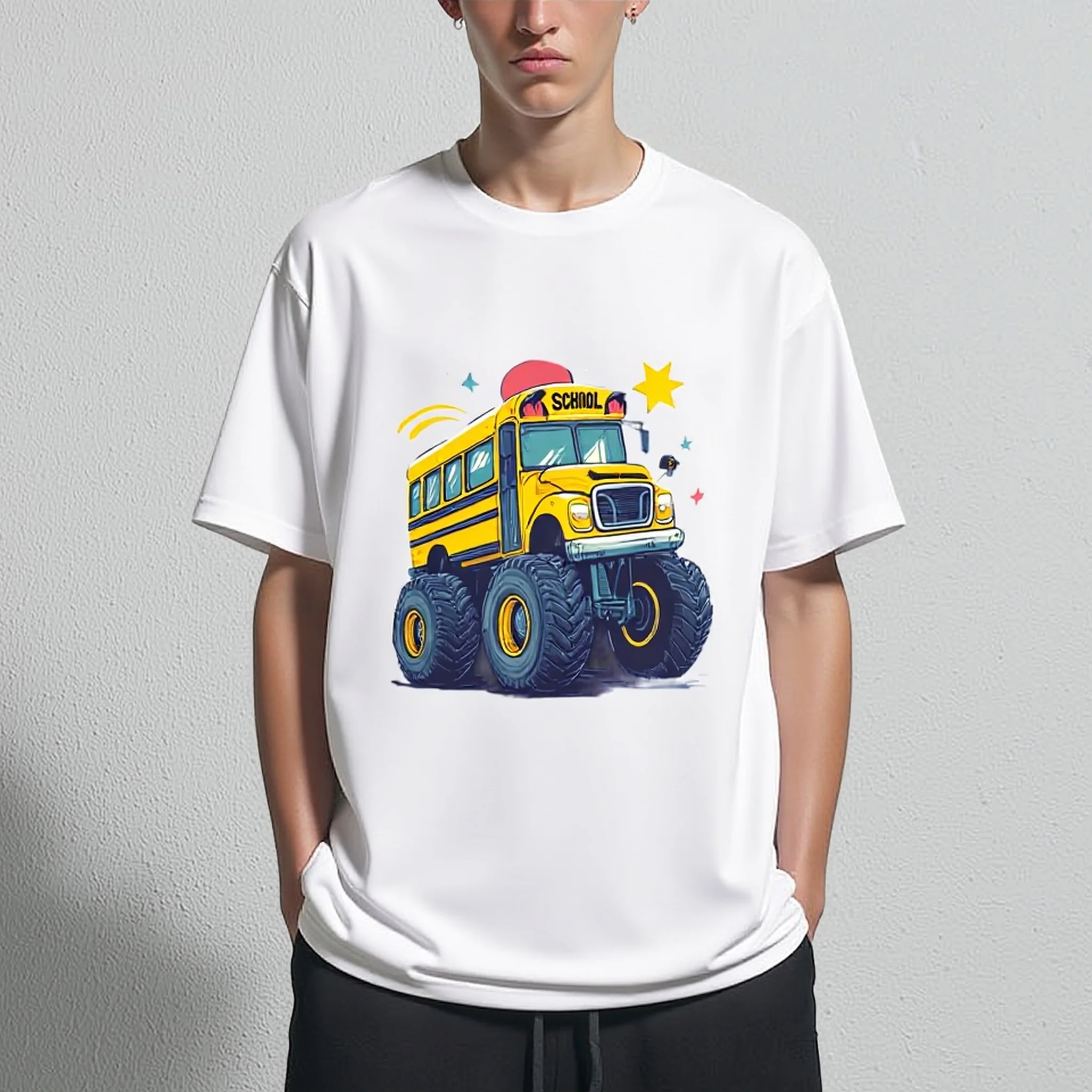 Men's Short Sleeve T-Shirt Cartoon School Bus Print Casual Daily Wear Graphic Tees Boutique