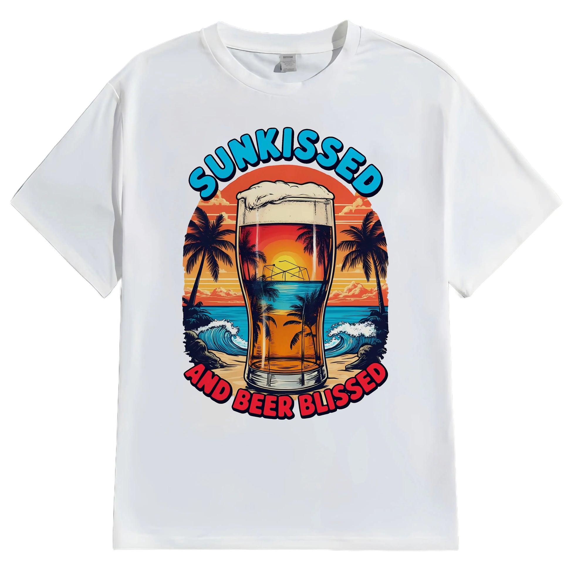 Men's Short Sleeve T Shirt Sun-Kissed Beach Scene Print Summer Vacation Streetwear Casual Daily Wear Fashionable Graphic Tee for Men