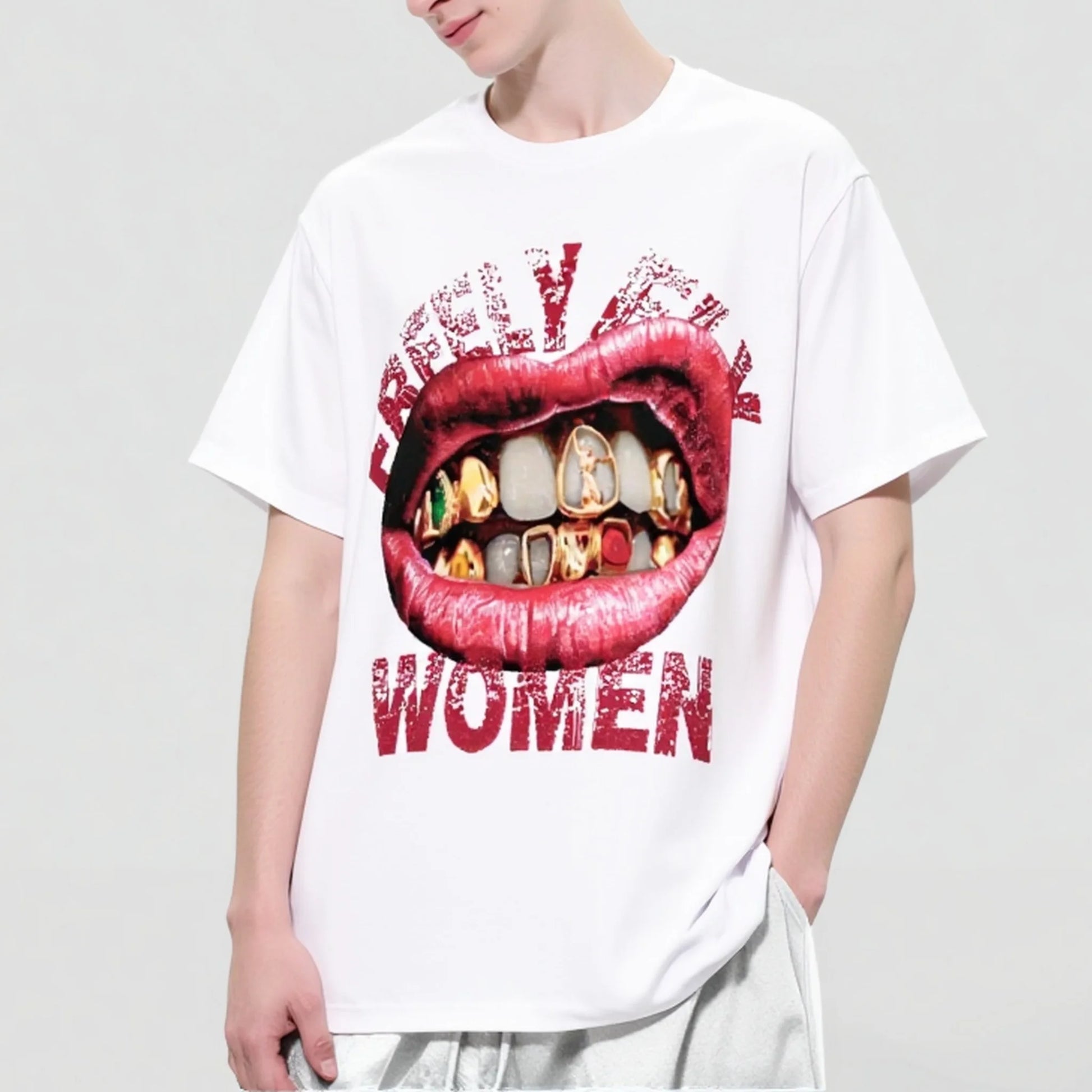 Men's Short Sleeve T-Shirt with Bold Lip and Letter Print for Casual Wear Fashion Tees For Summer