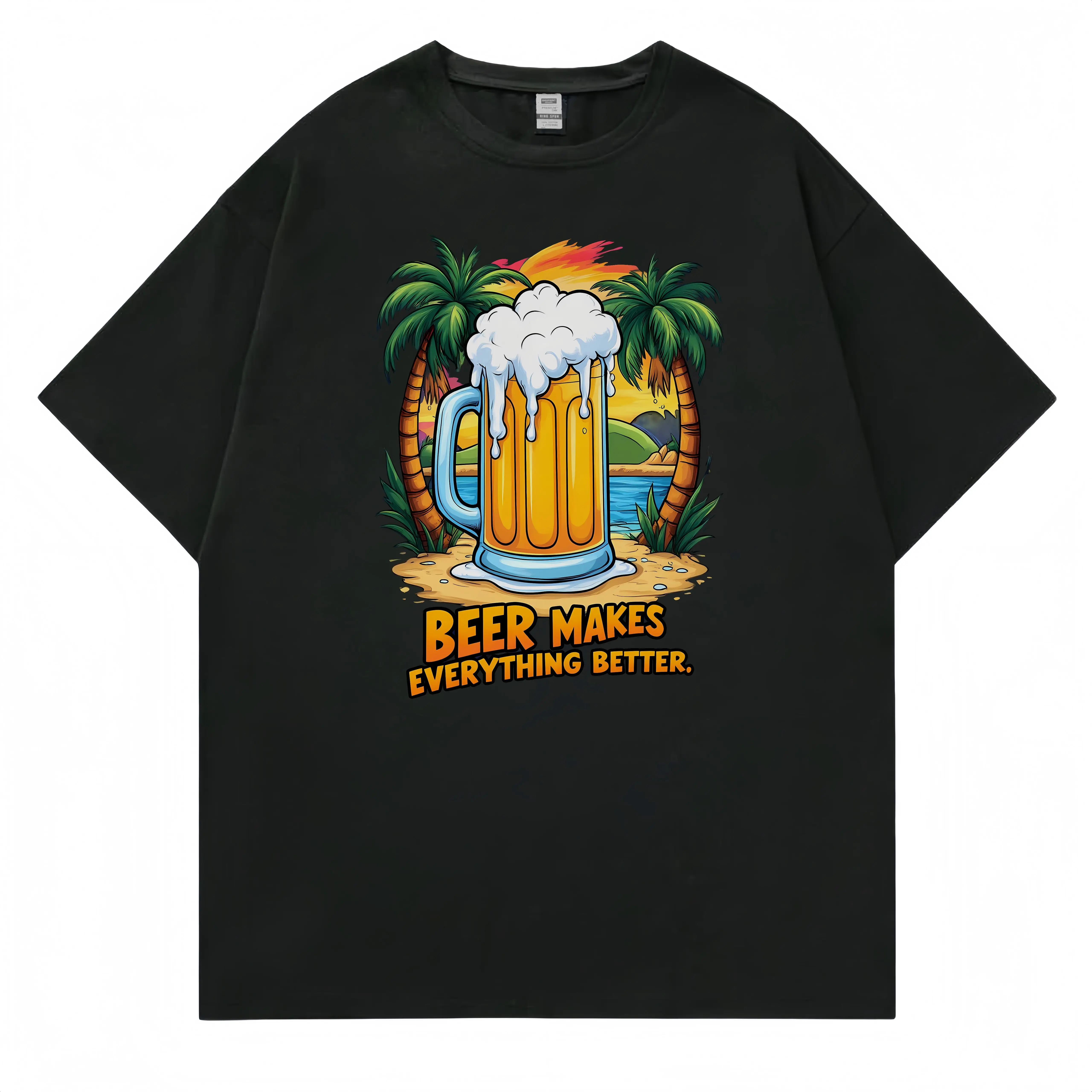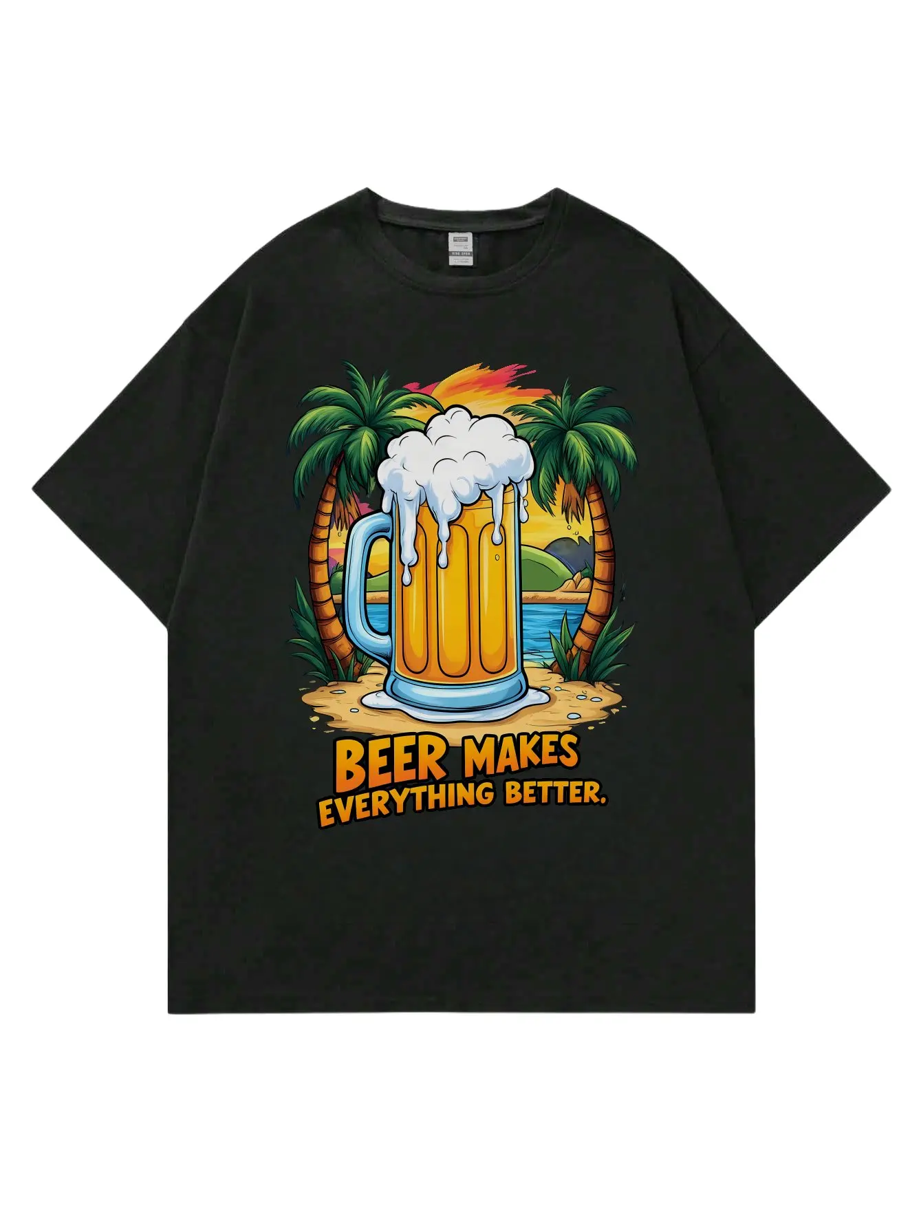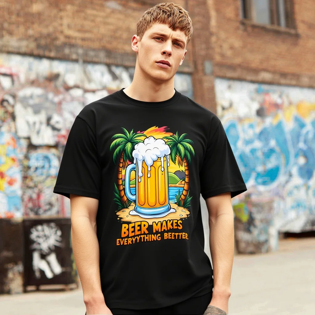 Men's T Shirt Palm Tree Beer Glass Print Beer Makes Everything Better Casual Summer Beachwear Fashionable Graphic Tee for Men