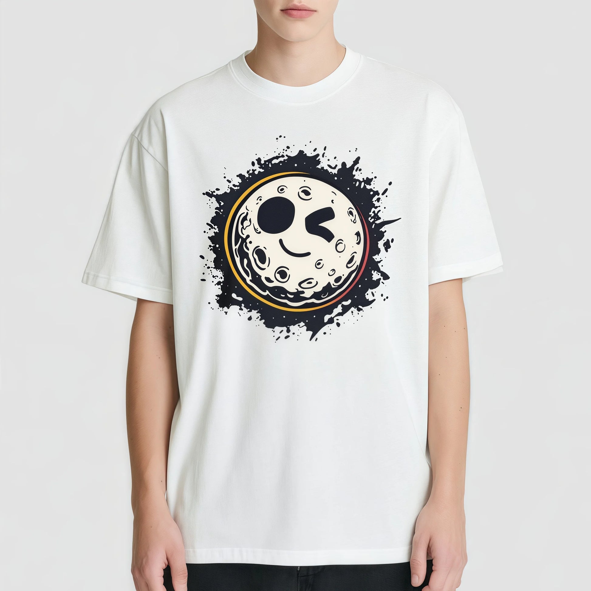 Pod Graphic Tees White T-Shirt with Moon Face Print for Casual Wear