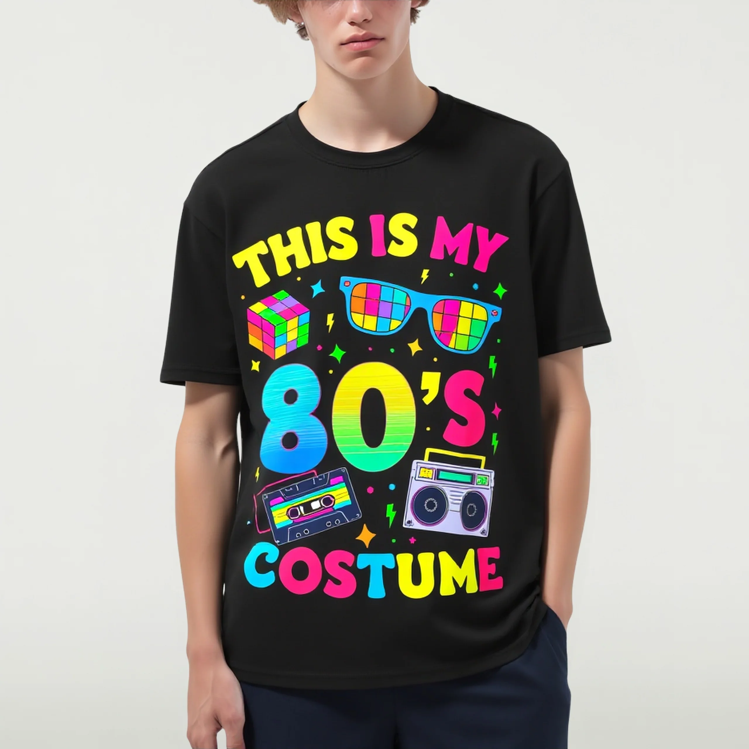 Retro Style T-Shirt with Colorful 80s Theme Print for Halloween Party Trendy Tees For Men