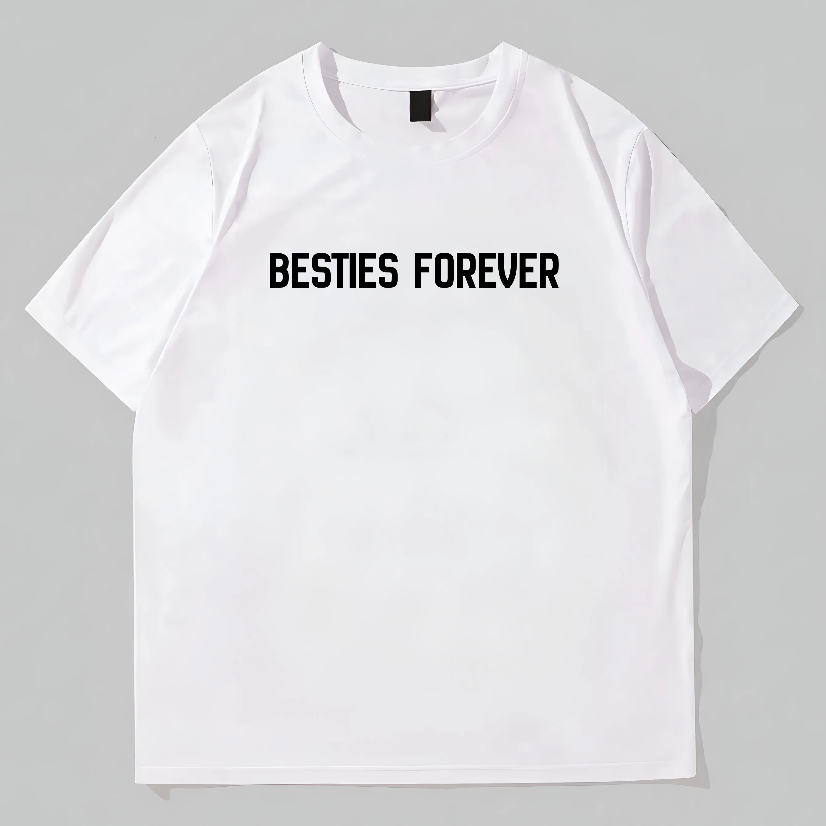 Simple Round Neck T-Shirt Besties Forever Text Print Casual Daily Wear Graphic Tees Design