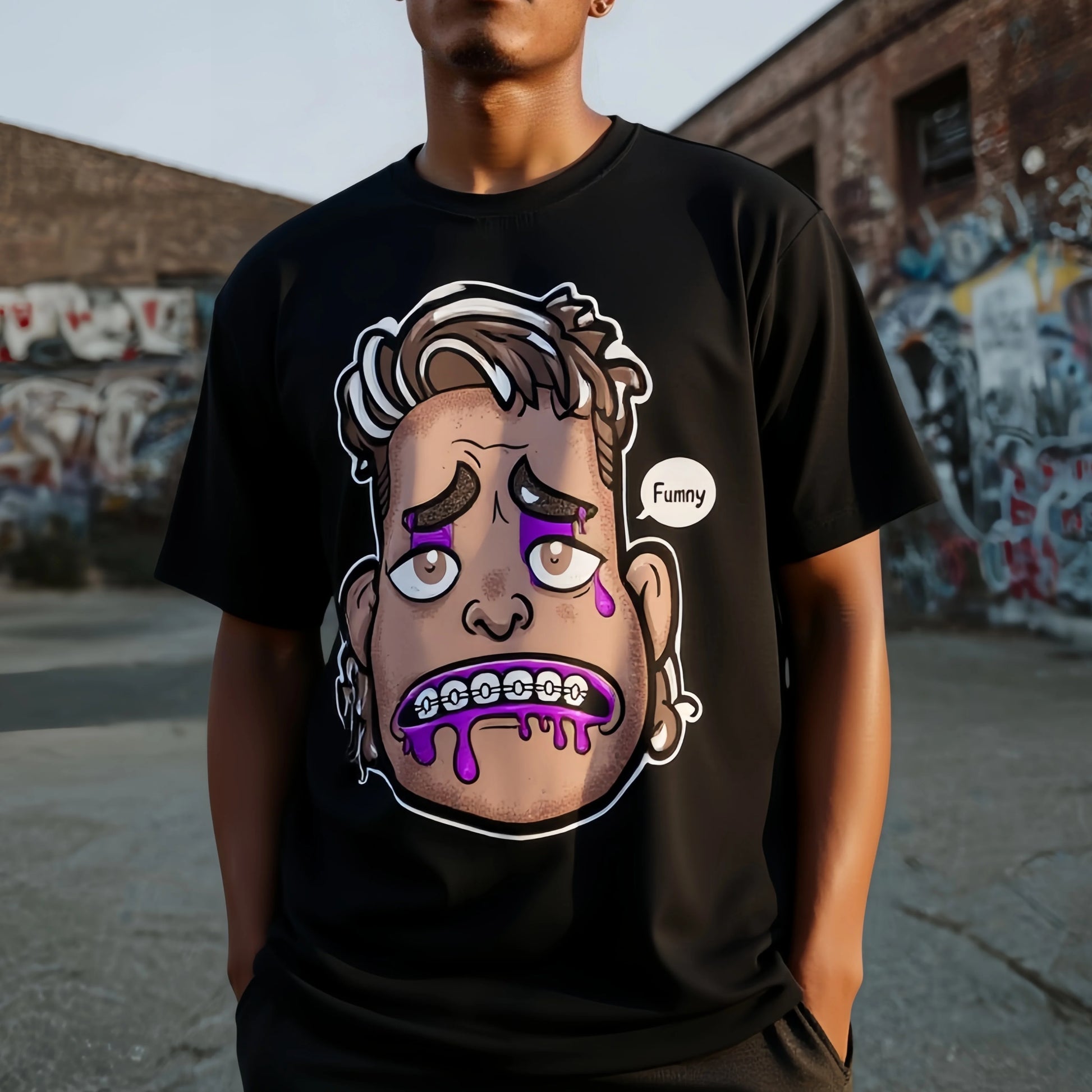 Streetwear Printed Graphic Tee Men's Casual T Shirt with Unique Cartoon Face Print and Funny Text - Perfect for Streetwear and Daily Wear Cotton Clothes For Men