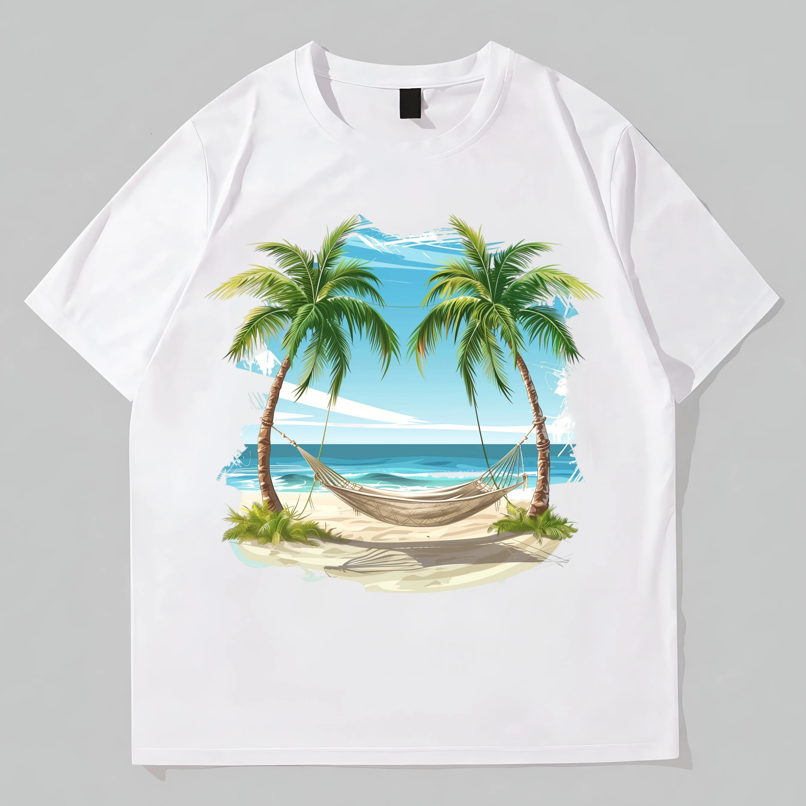 Summer Casual T-Shirt Palm Tree Beach Hammock Print for Vacation Travel POD Graphic Tees