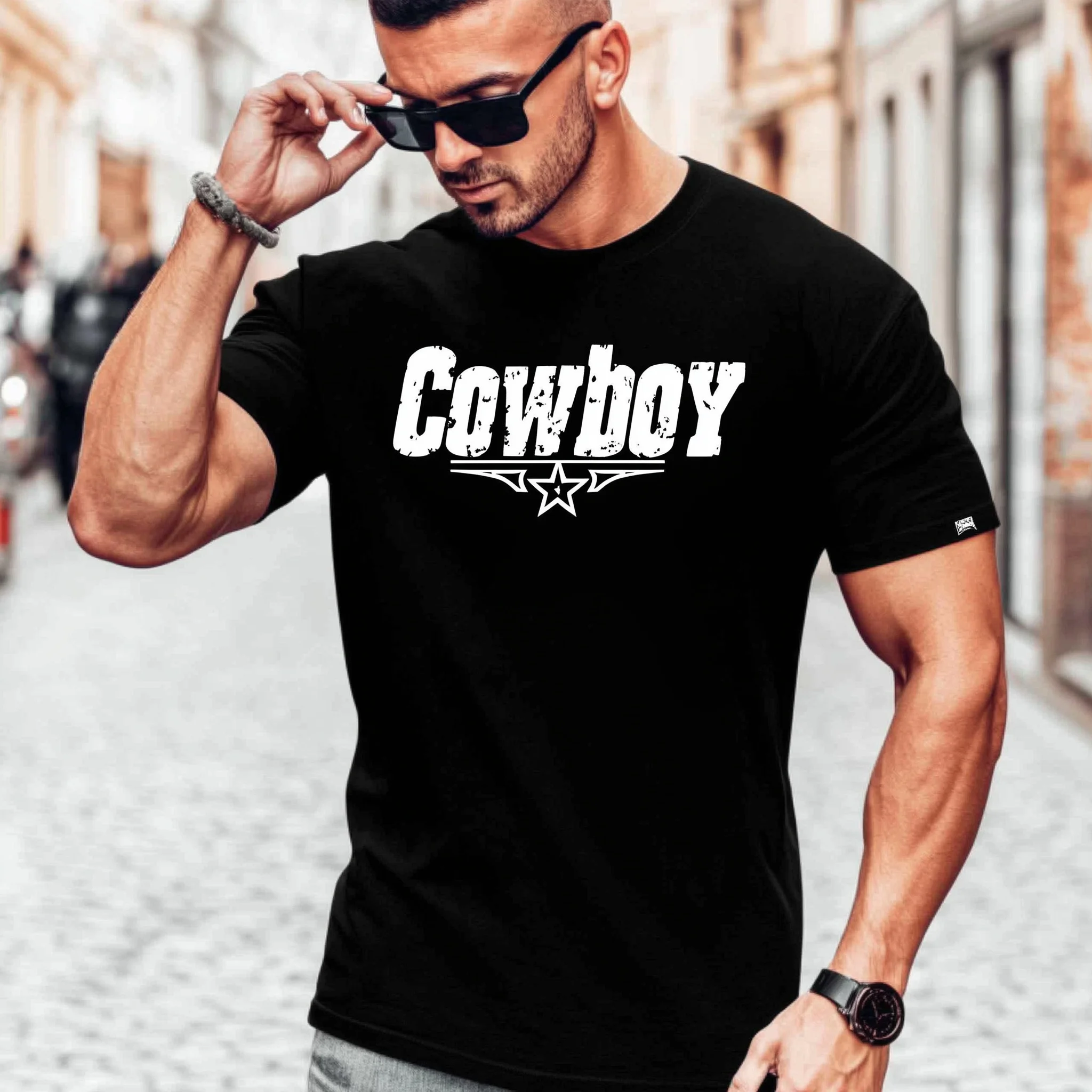 Trendy T-shirt For Man Casual T-Shirt Cowboy Text and Star Graphic Print for Daily Wear