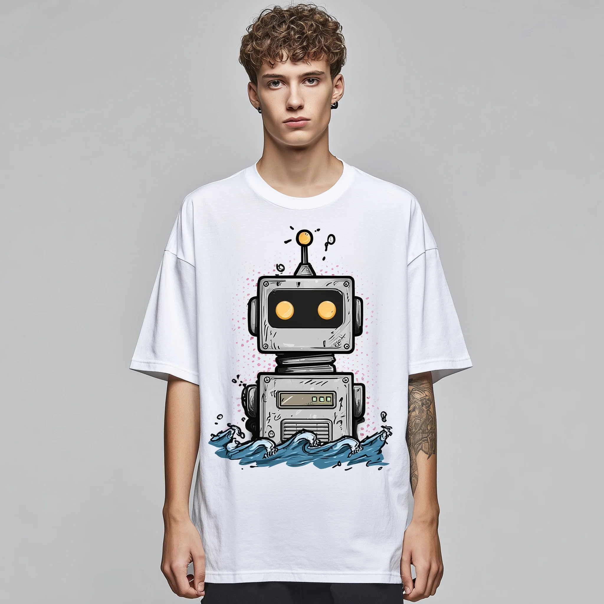 Trendy T-shirt For Man Casual T-Shirt Robot Graphic Print Summer Daily Wear