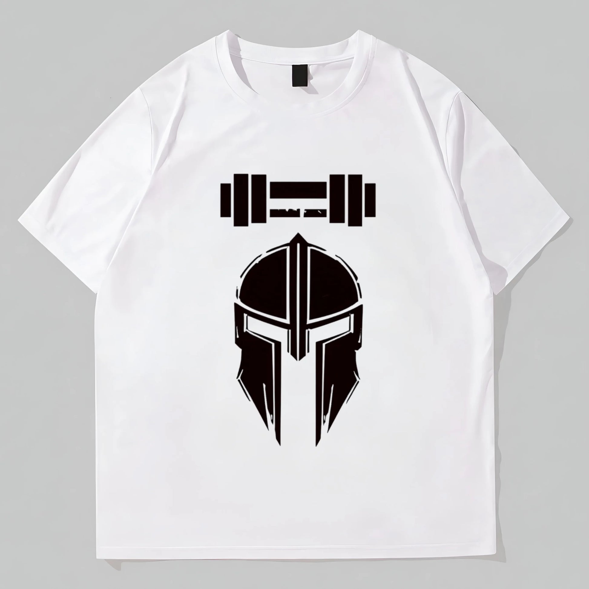Trendy T-Shirt For Man Men's Short Sleeve T-Shirt with Warrior Helmet Graphic Design for Fitness Enthusiasts